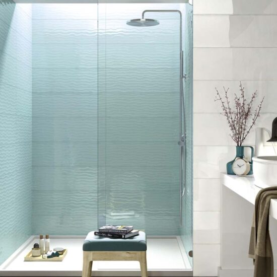 Revêtir les murs de la salle de bains avec des couleurs et des textures inspirées des faïences traditionnelles