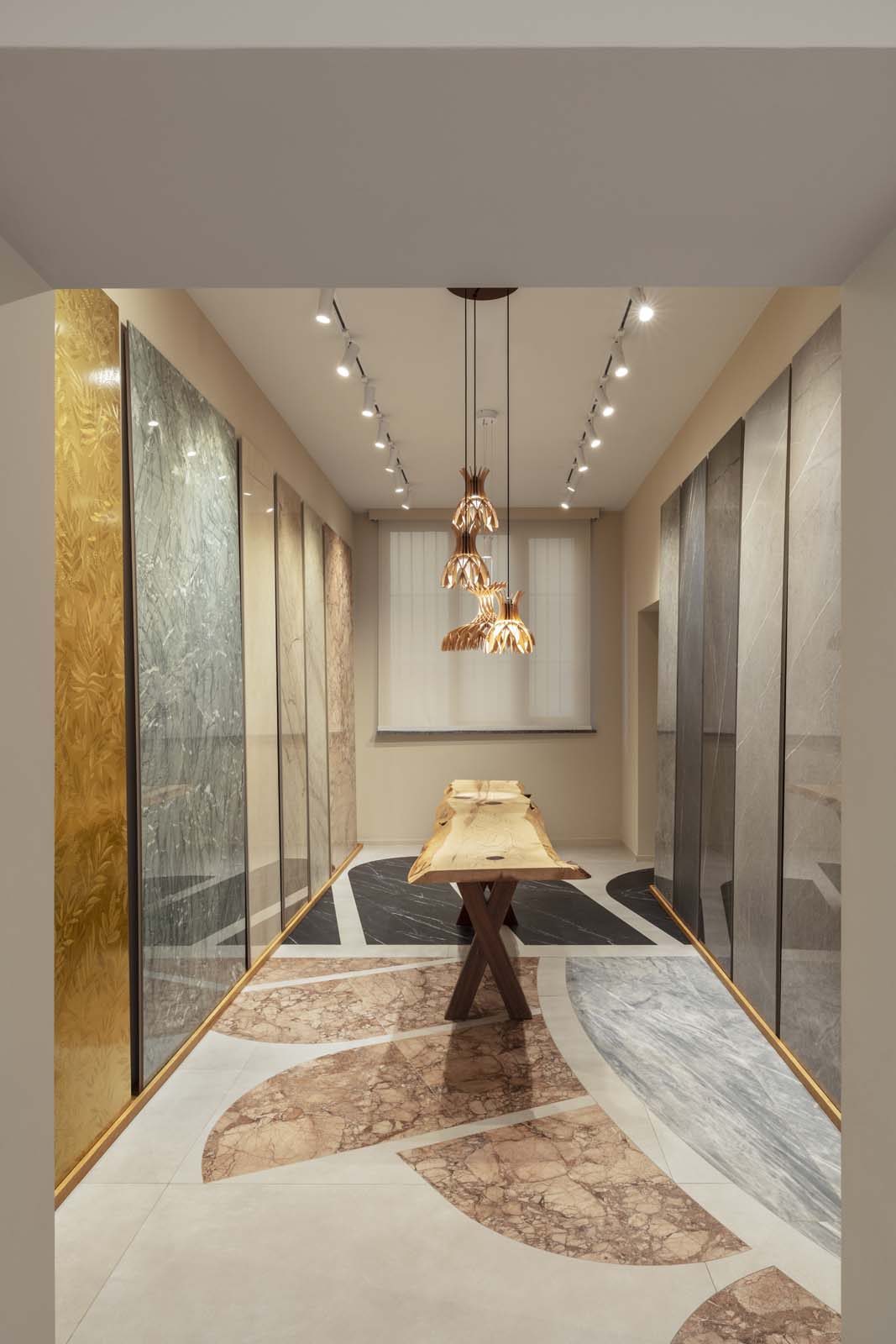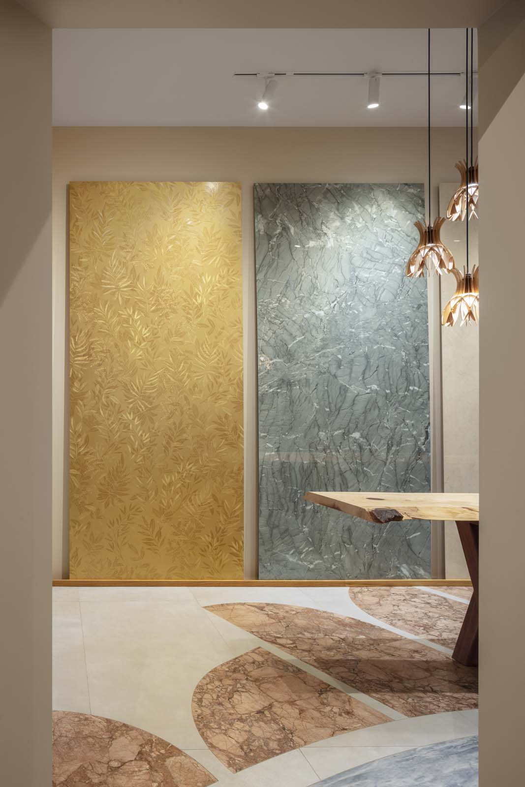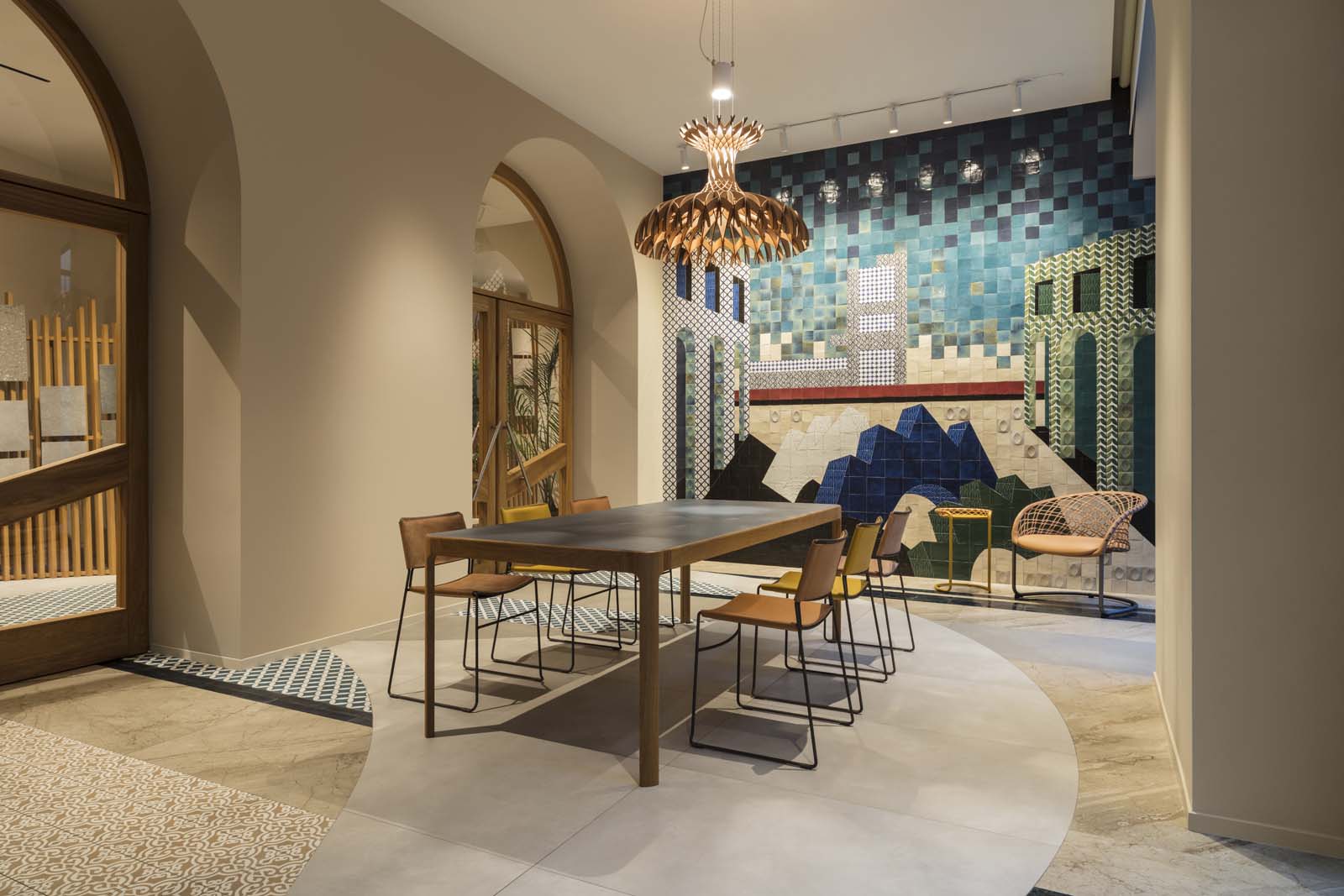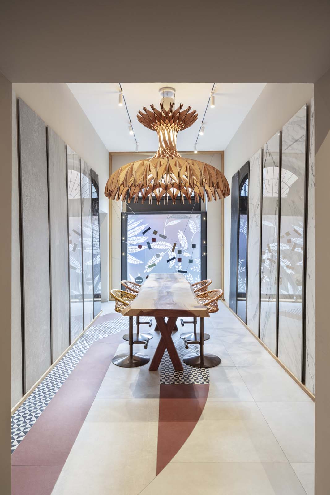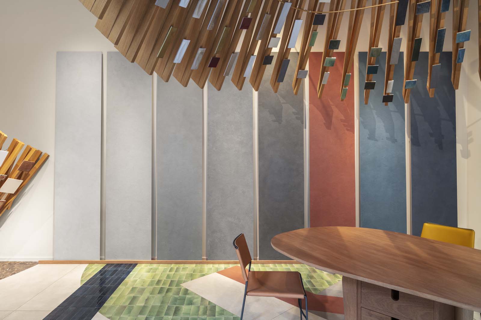 Parmi les nouveautés présentées : le petit format Amuri, qui rend hommage à la tradition méditerranéenne et au savoir-faire de ses artisans, ainsi que la vaste gamme de dalles en grès cérame, des textures imitation ciment de Stratford aux variétés sophistiquées imitation marbre de la gamme Incanto.