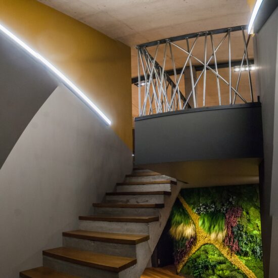 Et c'est précisément cet impalpable et fascinant aspect du projet, le temps, qui justifie la présence des hexagones de la collection Rewind de Ragno dans une maison conçue par Laura. Il s'agit d'un édifice de 600 mètres carrés, distribué sur deux niveaux communiquant entre eux par un escalier intérieur en béton et en bois.