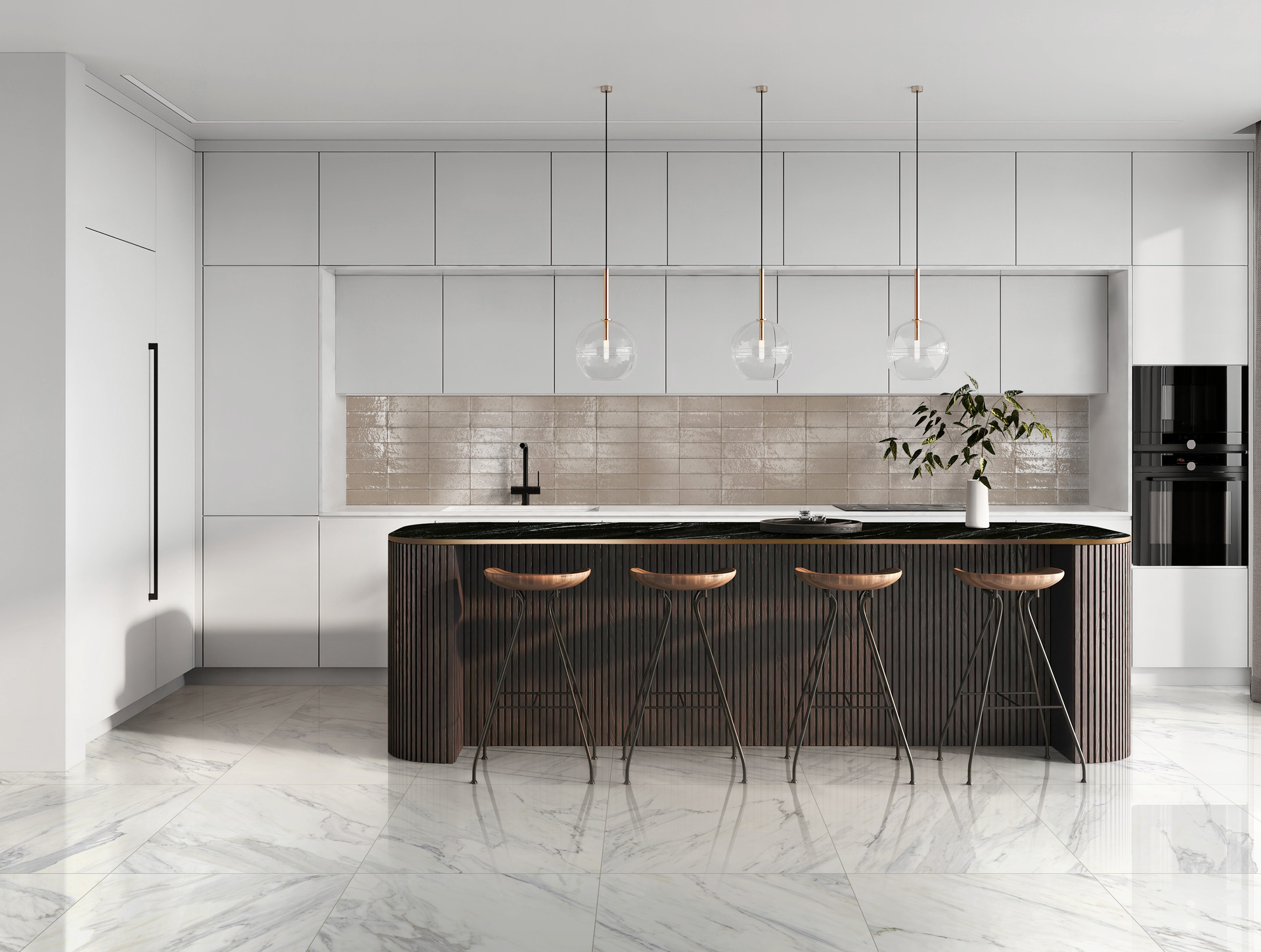 Les classiques finitions Ragno – Naturel et Glossy – offrent de magnifiques solutions pour le sol et les murs, parfaites aussi pour personnaliser des décorations sur mesure, comme éléments de cheminée, volumes d’îlot en cuisine ou plans de toilette dans les salles de bains.