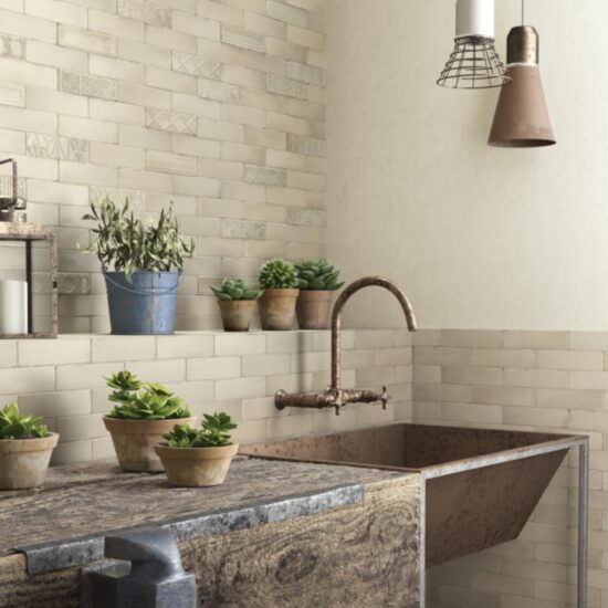 Eden est une briquette revêtu de faïence à l’aspect ciré et antiqué, disponible en 5 nuances : Bianco, Cotone, Greige, Fango et Ottanio et dans la finition brillante. Ses bords sont irréguliers pour mettre en valeur l’imperfection de la matière et évoquer le style des époques passées. Pour une touche d’originalité, Ragno propose le décor Tin, disponible dans les couleurs Bianco et Cotone, qui s’inspire des dalles émaillées d’origine en fer-blanc utilisées dans les bâtiments industriels d’époque victorienne.