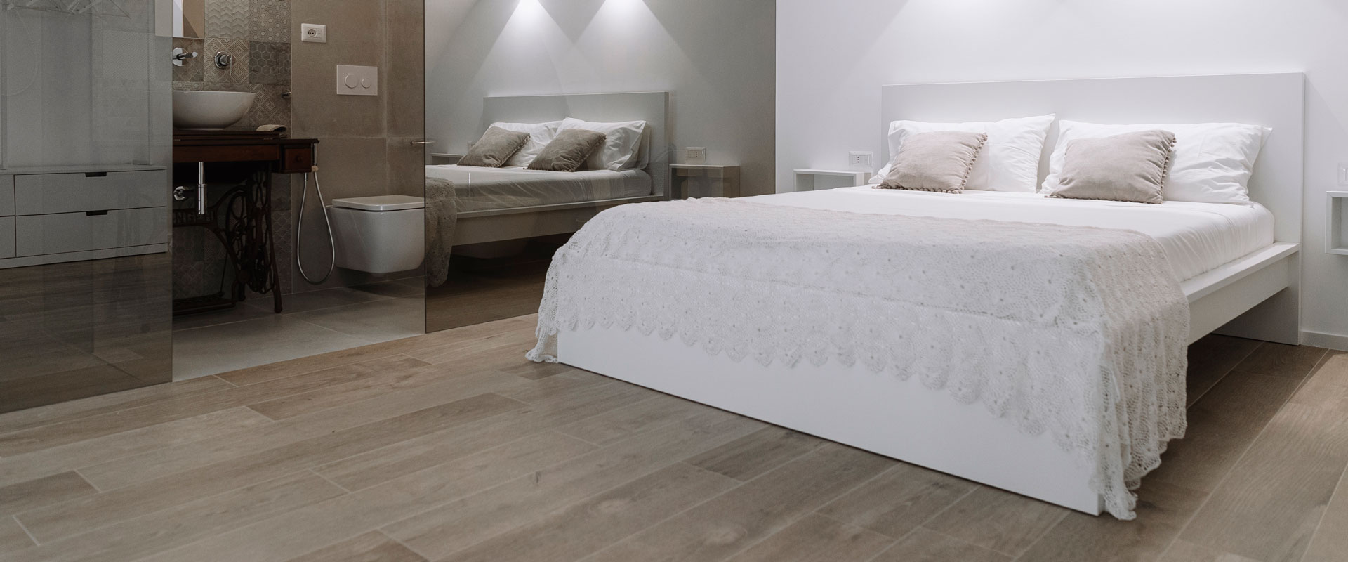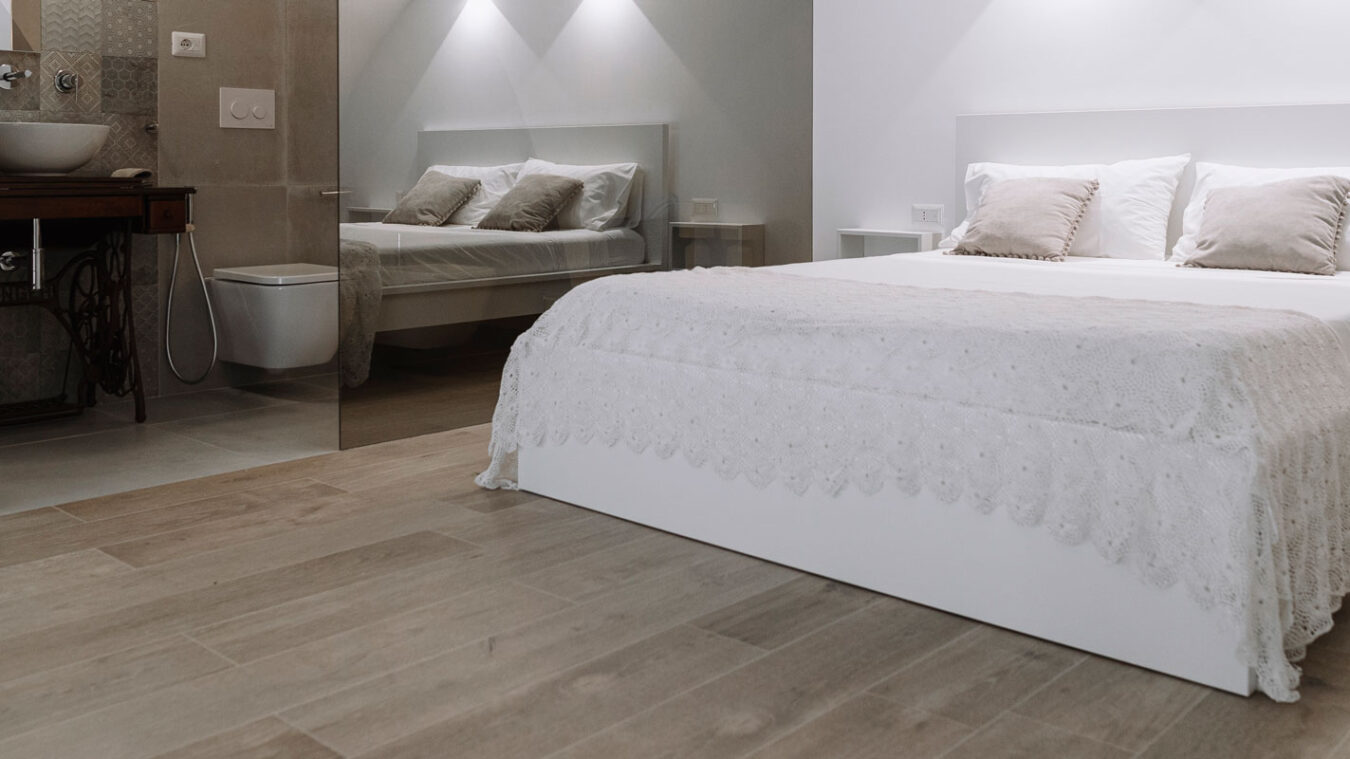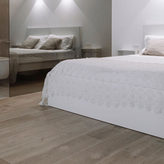 Seule l'esthétique du bois pouvait créer le lien parfait entre l'histoire des lieux et les nouvelles exigences. D'où le choix de Woodsense, un grès imitation bois à la crémeuse variante Beige, en 20×120 cm, élégant et facile à poser même là où la géométrie est aussi erratique que le cours des ans.