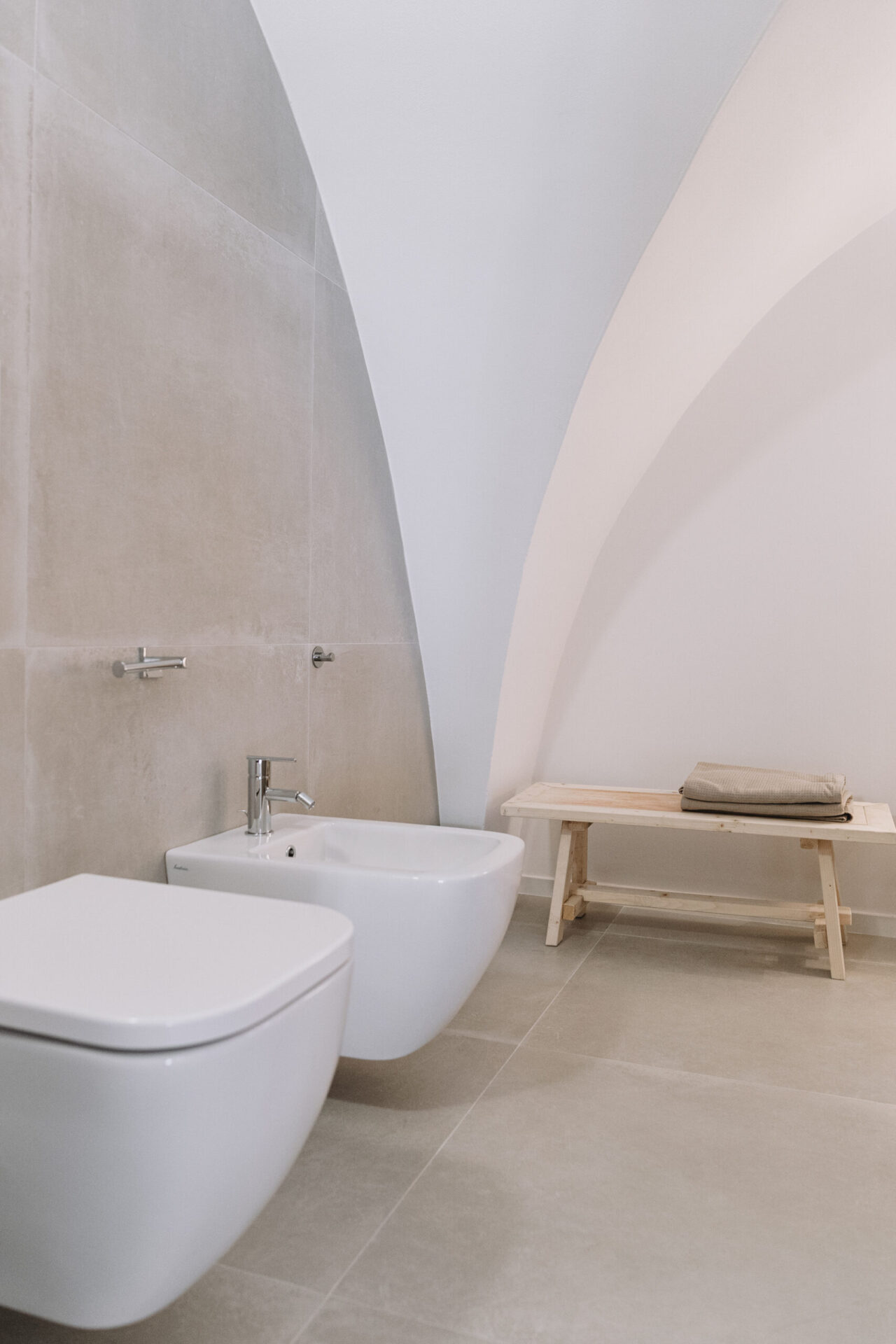 Dans l'une de ses salles de bains, l'élégance, douce et lumineuse, a pris forme dans le grès cérame Patina, la proposition Ragno idéale pour ceux qui aiment l’uniformité de la résine et ceux qui, en outre, rêvent de lire sur les surfaces en grès les traces laissées par le temps et les gestes réitérés du quotidien, génération après génération.
