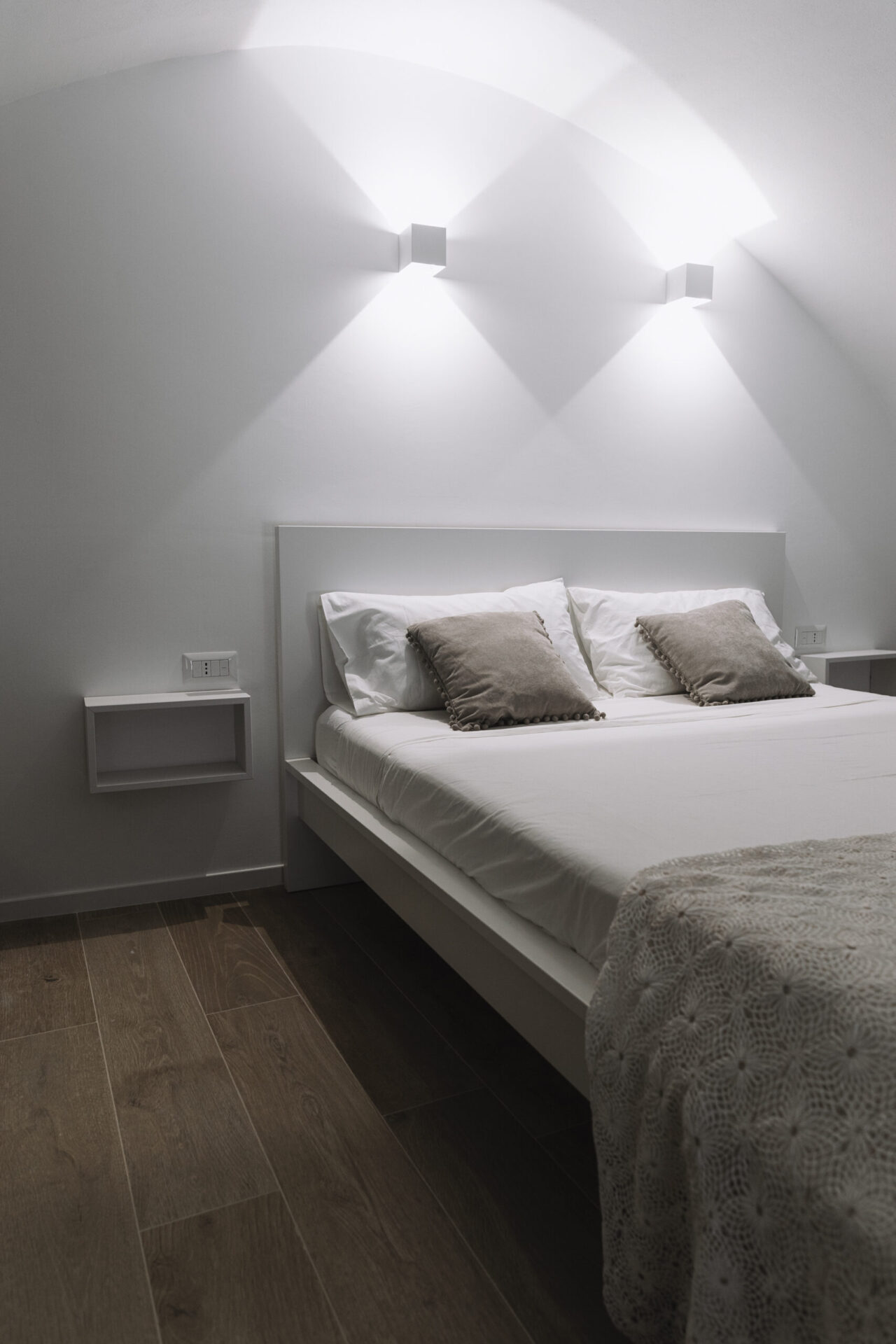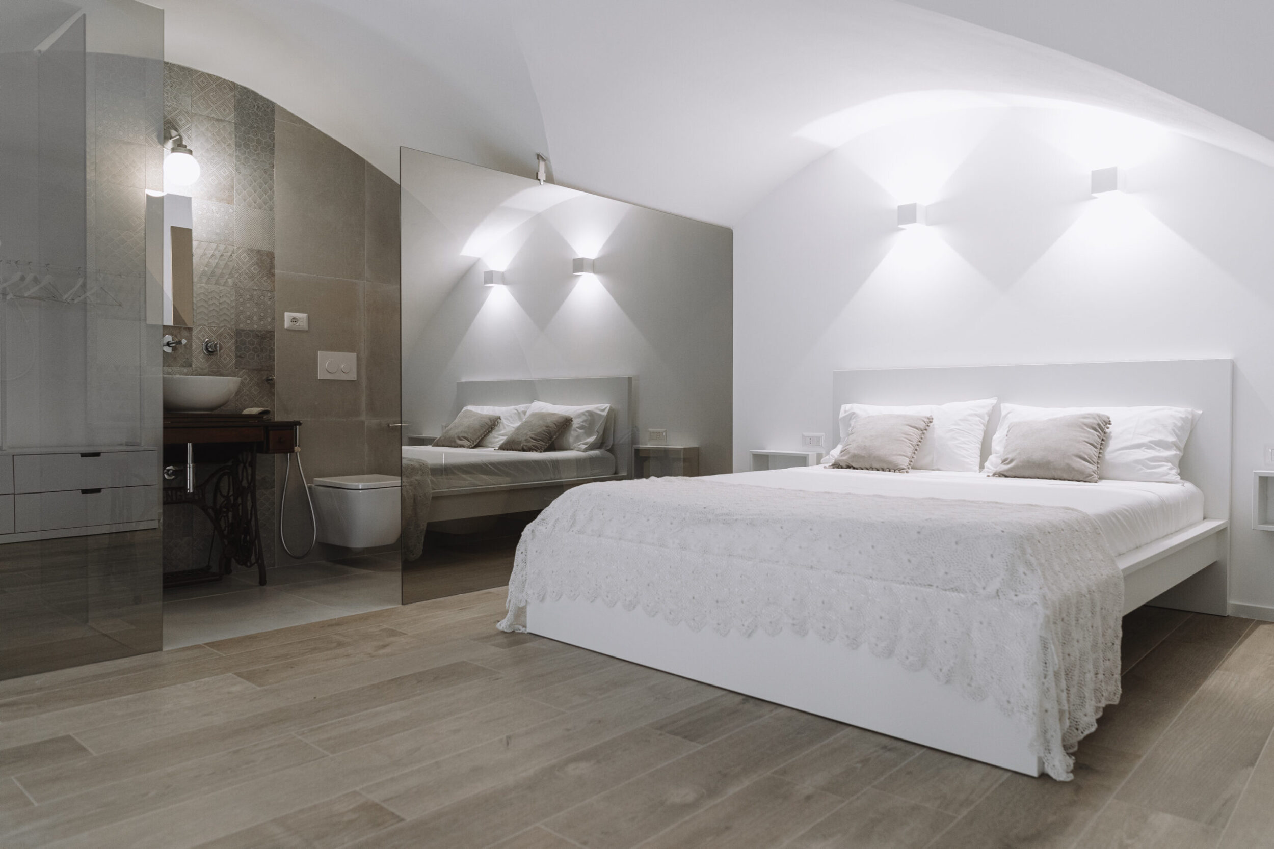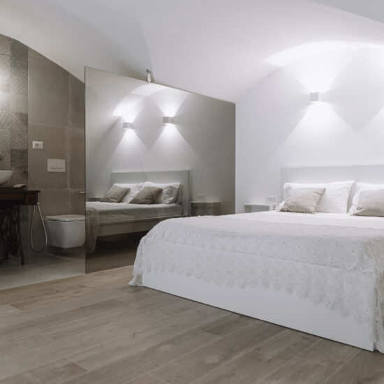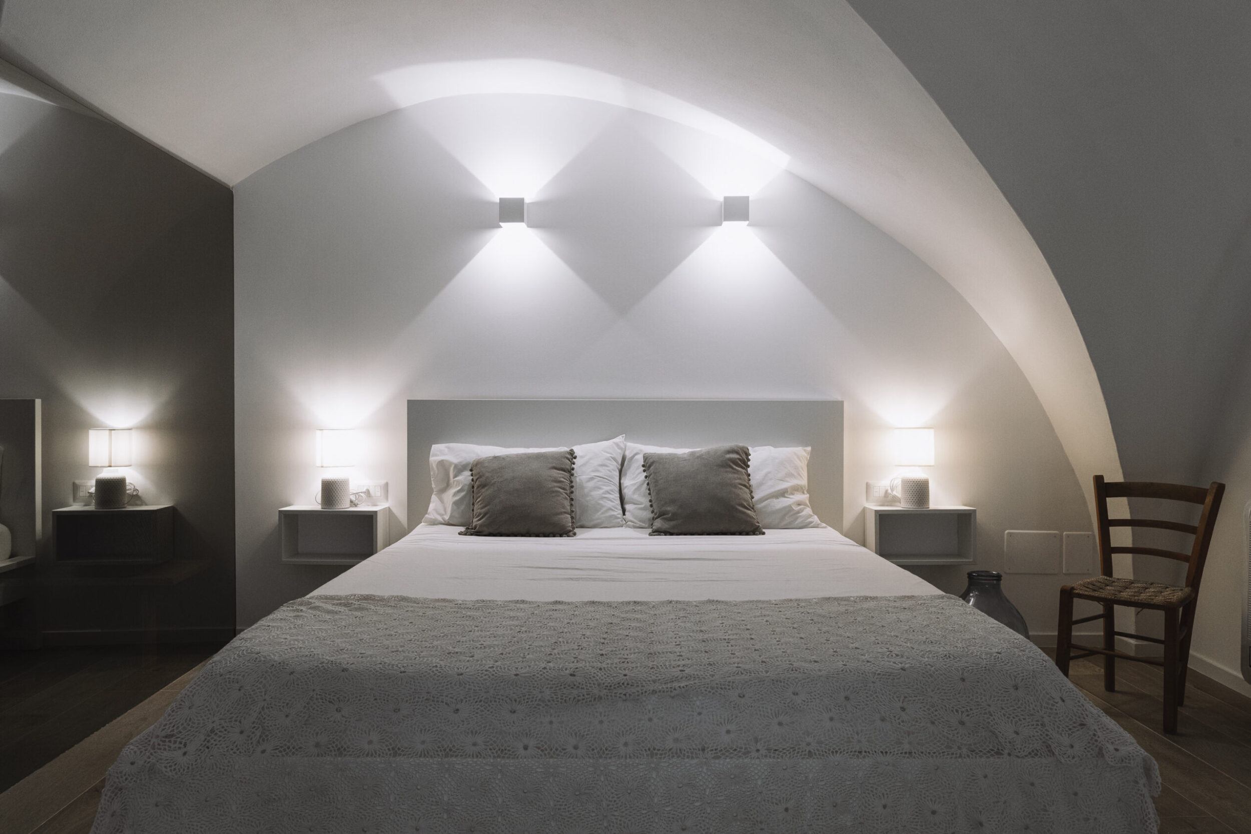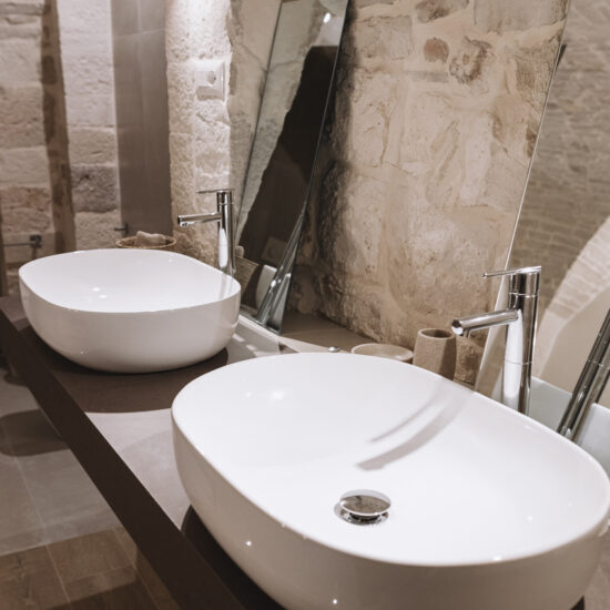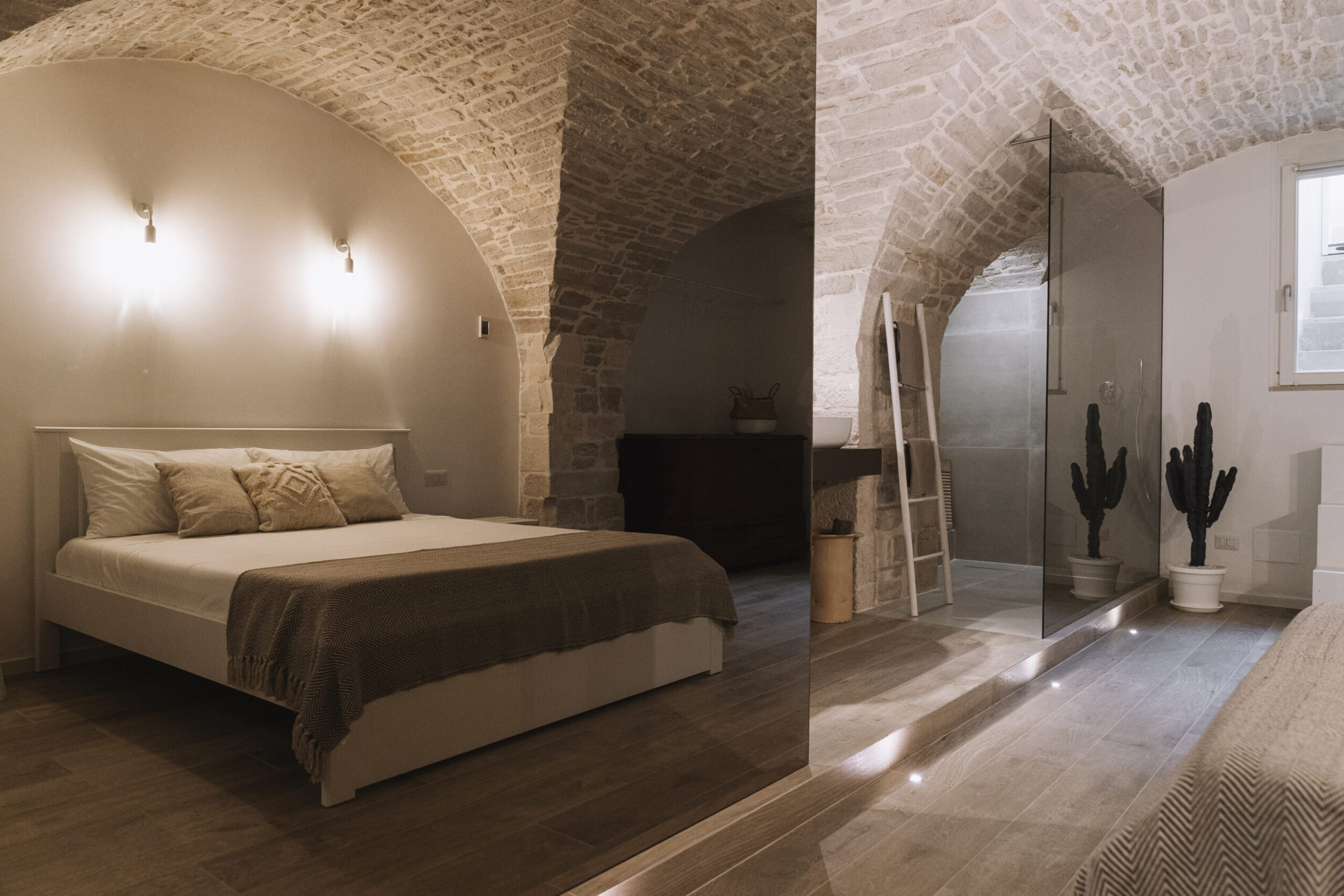 À la base, la pierre locale représente une sorte de cocon protecteur issu du passé, solide. À l'intérieur, l'atmosphère est étonnamment chaleureuse et caressante. La nouvelle géométrie des espaces, multipliés par le reflet du verre et des glaces, dessine des pièces modernes et lumineuses dans lesquelles passer des jours entiers, faisant l'éloge du repos et de la lenteur.