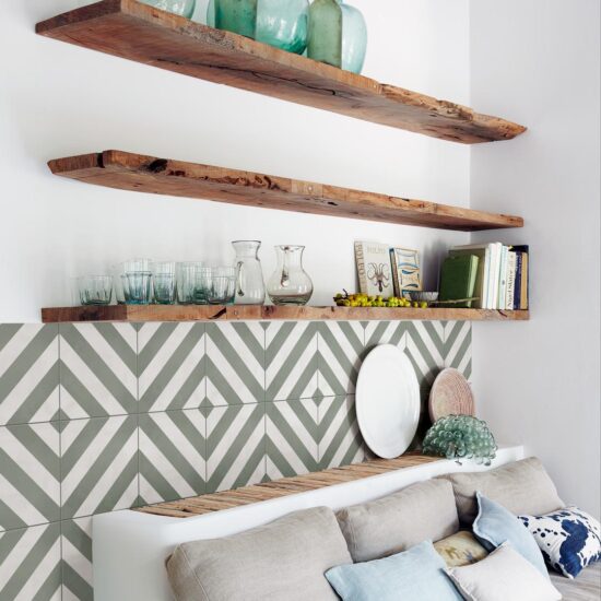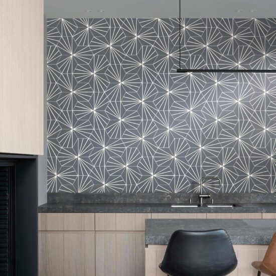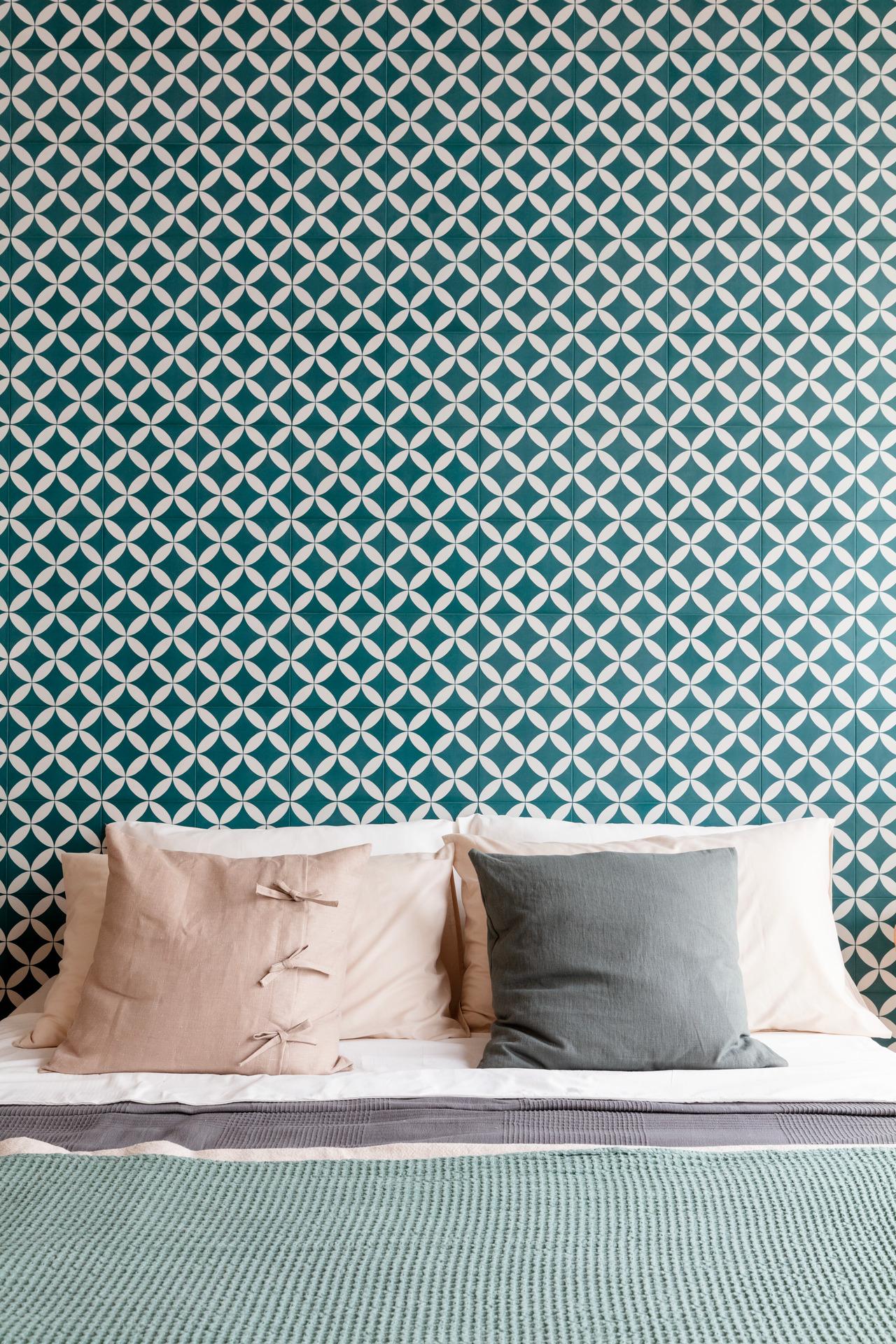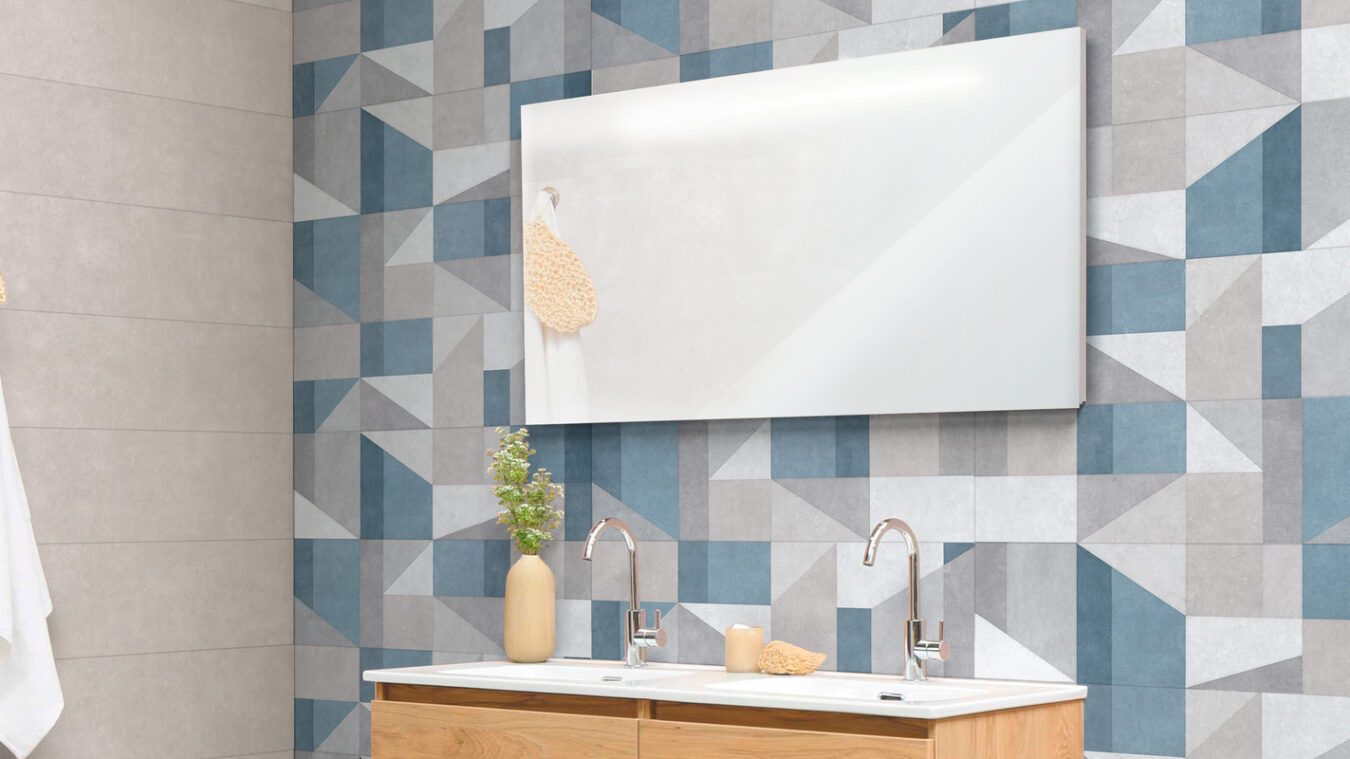 Comment recréer un cadre d'inspiration nordique avec les revêtements en céramique et en grès façon tapis à fantaisies géométriques.