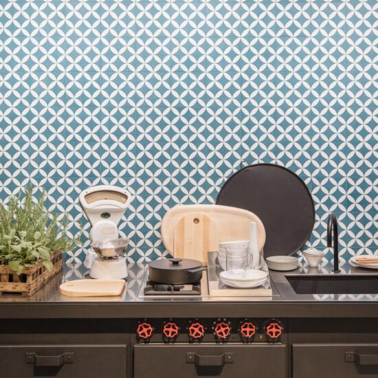 La collection en grès cérame Stratford se distingue tout particulièrement par le format hexagonal du décor Tratto, disponible en 8 couleurs, du rouille au gris, du bleu poudre à la nuance crème. Les carreaux peuvent être posés en séquence pour dessiner des géométries effet optical ou en alternance avec les produits en teinte unie.