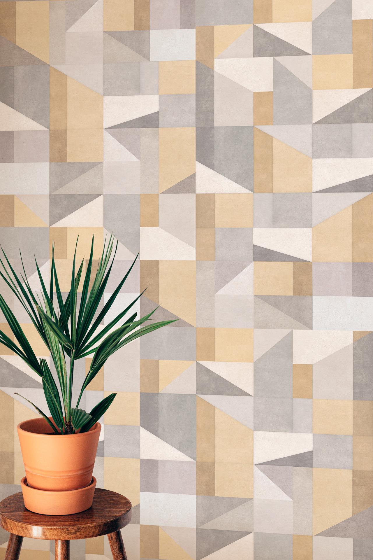 La collection Contrasti propose plusieurs versions de décorations formant des répétitions de petits segments triangulaires en alternance avec des ogives dans les tonalités du gris, du bleu pétrole, du vert céladon et du beige. La collection Replace, quant à elle, comporte le décor Equilibrio : des segments Optical qui se répètent sur les murs dans les variantes du beige et du gris.