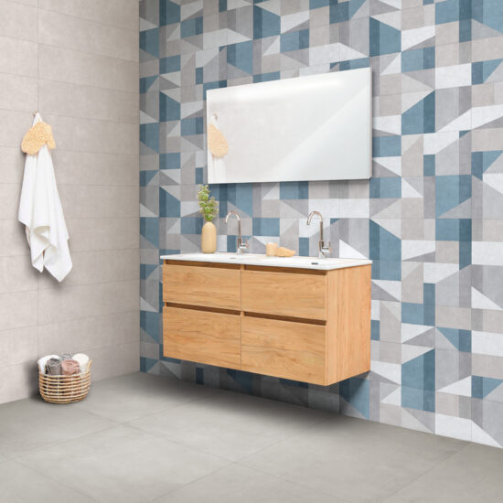 Les décors géométriques des collections Ragno en grès et en céramique sont parfaits pour créer des lieux accueillants, minimalistes et harmonieux dans chacun de leurs éléments.