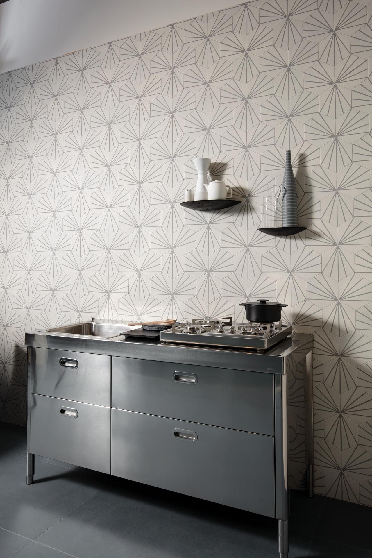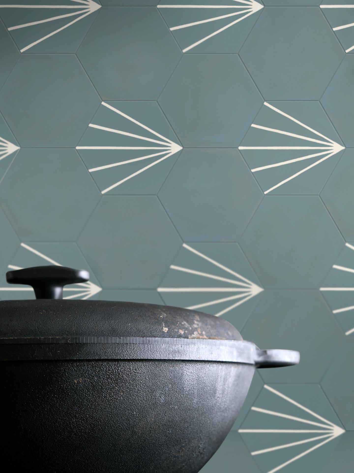 Le choix peut s'orienter sur les carreaux hexagonaux en teinte unie, dans les nuances pastel, pour un effet géométrique mouvementé et uniforme, ou sur les carreaux à décorations minimalistes comme ceux de la collection Stratford.