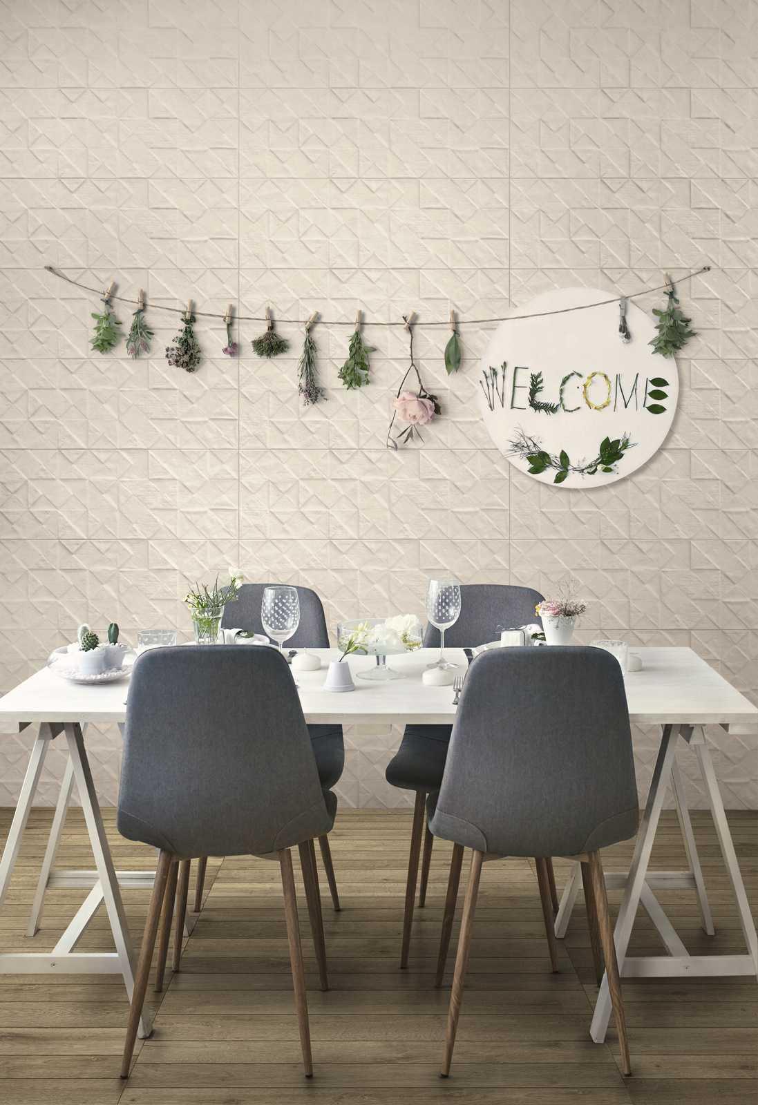 La collection Resina est, elle aussi, idéale pour instaurer des ambiances flanquées d'un esprit nordique prononcé, et notamment la structure Bee 3D, une décoration avec entrelacs de nids d'abeille, proposée en 6 colorations.