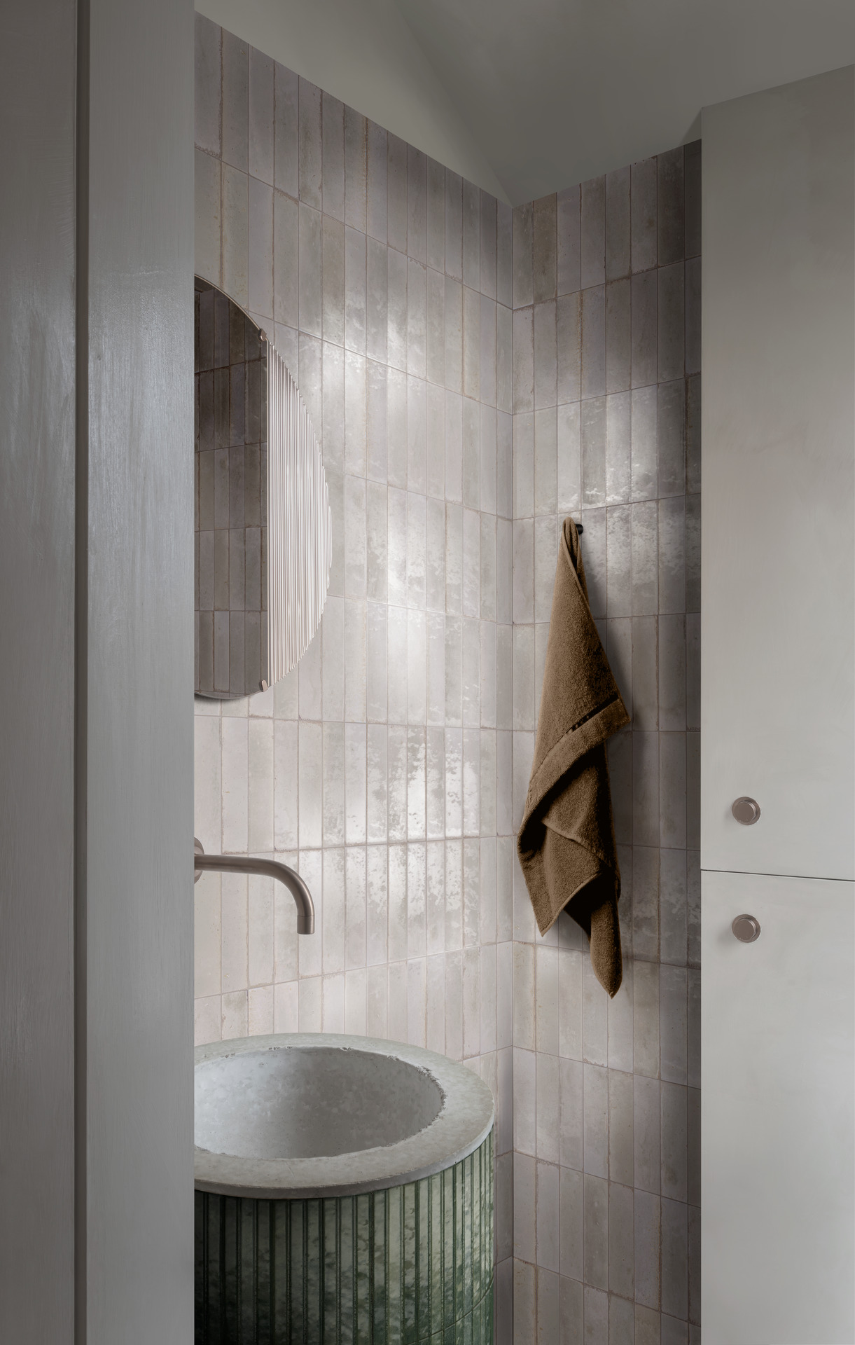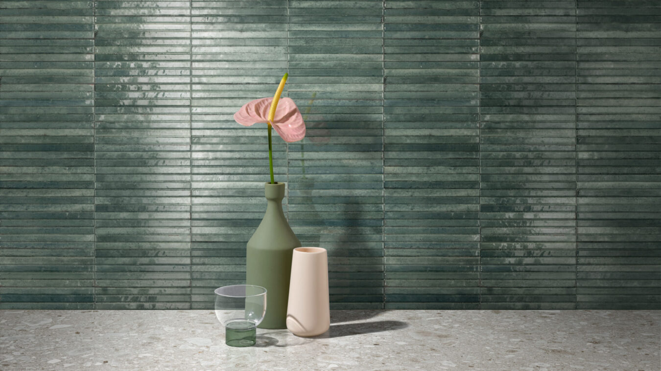 La collection accueille également la Structure 3D Yubi, inspirée de la mosaïque classique des « doigts » de la tradition orientale. Elle est réalisée sur les trois nouvelles couleurs et sur une sélection de teintes déjà présentes dans la gamme – Bianco, Oliva, Avio et Blu. Son format 6×24 cm est visuellement subdivisé en trois baguettes ayant une forme de lingot aux lignes douces et arrondies. Le graphisme de la pièce est à son tour découpé en trois parties, afin de renforcer cette division par des mouvements irréguliers le long du bord des incisions en relief.