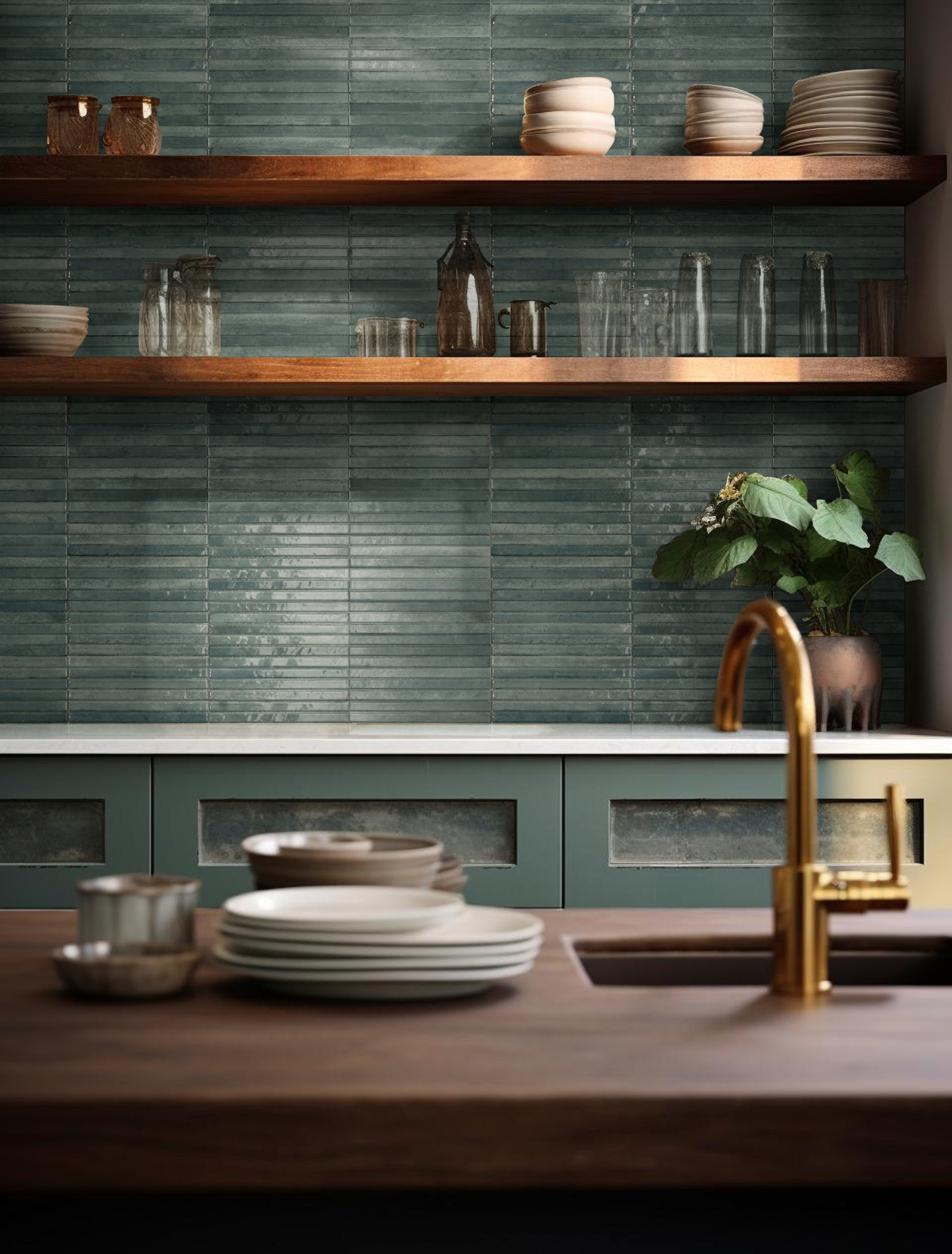 La pose aléatoire, mêlant des facettes aux graphismes et tonalités variés, accentue l’aspect « imparfait » pour créer des compositions sophistiquées sur murs et sols. Le format « briquette » se révèle également très polyvalent : posé horizontalement ou verticalement, en bâtons rompus ou sur des volumes, meubles, comptoirs et lavabos, même aux formes circulaires. En tant que matériau traditionnel en architecture, il convient aussi parfaitement aux revêtements de façades extérieures.
