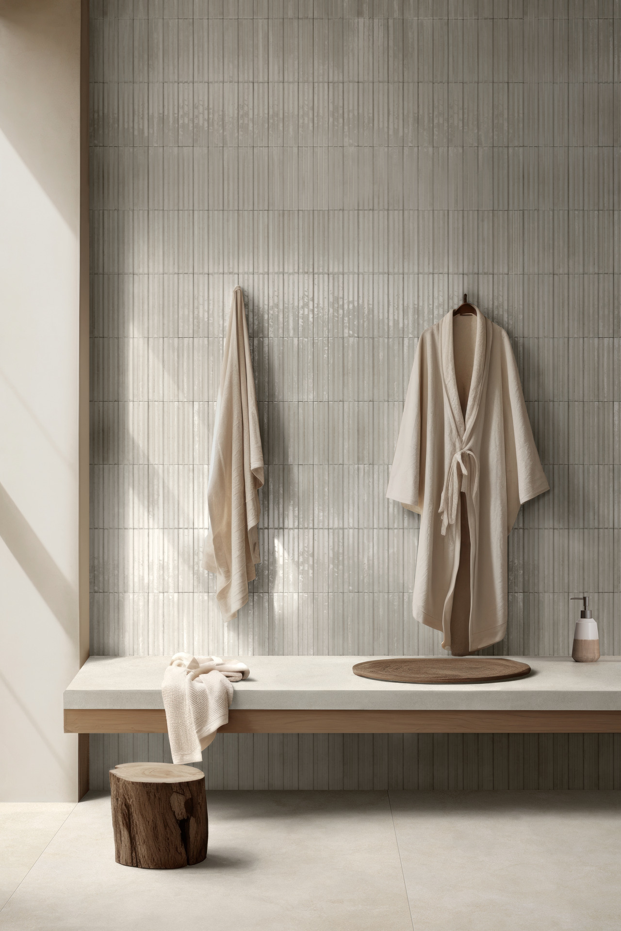 La typique briquette 6×24 cm de la collection Look, aux bords droits pour un effet rectifié, met en valeur le caractère artisanal d’un produit pourtant réalisé de manière industrielle.