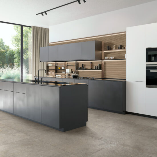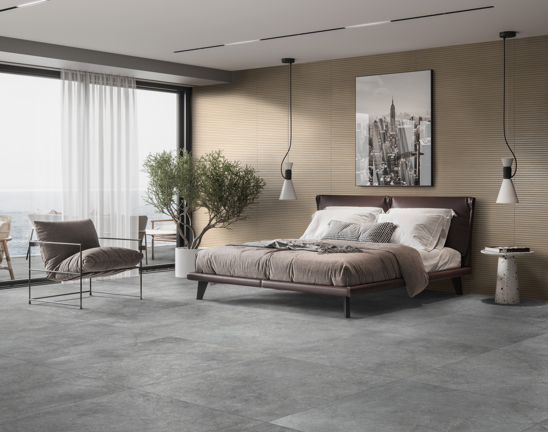 Ivory, Taupe, Musk, Carbon et Silver, cinq couleurs exprimées sur deux formats rectifiés de 100×100, 60×120 cm et 60×60 cm, développés à leur tour avec trois finitions de surface – Naturelle R9, Naturelle R10B et Structurée R11C – pour un grès cérame pratique et extrêmement résistant. La Mosaïque de 30,3×30,3 cm dont les tesselles hexagonales existent dans toutes les couleurs, complète cette collection.