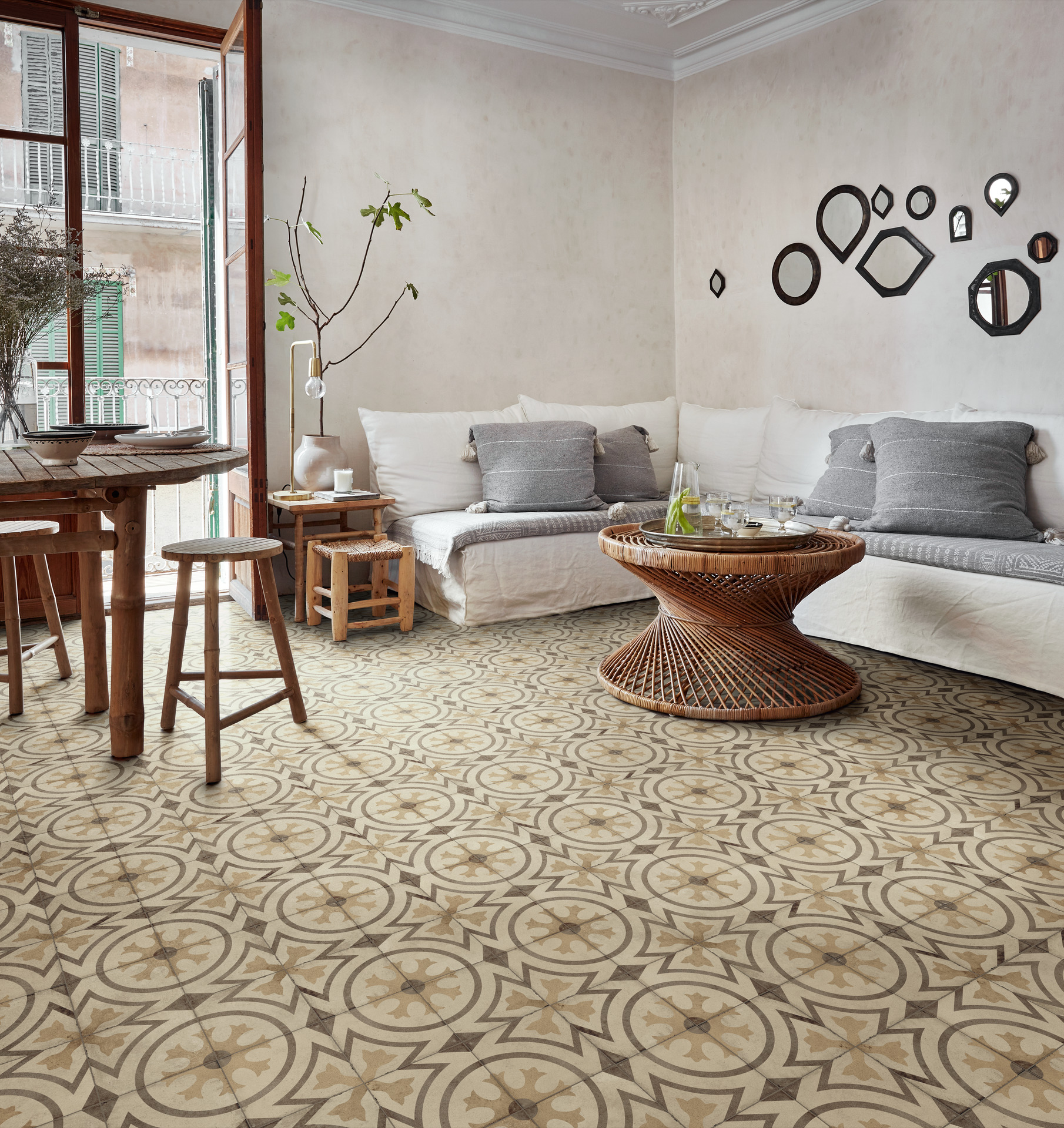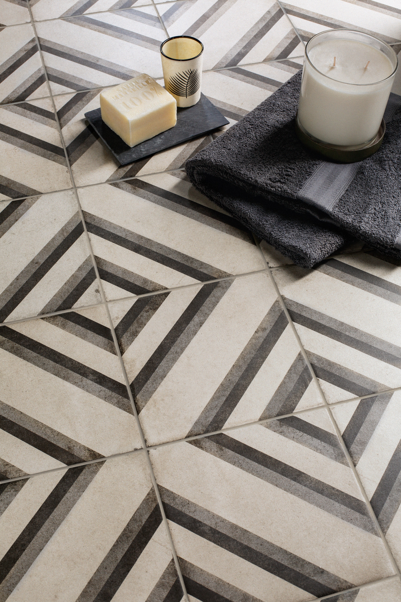 La géométrie et le décor raffiné de la nouvelle collection Ottocento racontent l'intimité des espaces d'une maison du Salento lumineuse et accueillante.