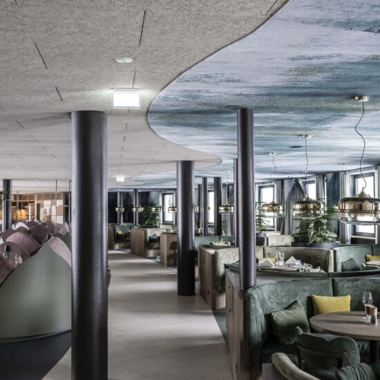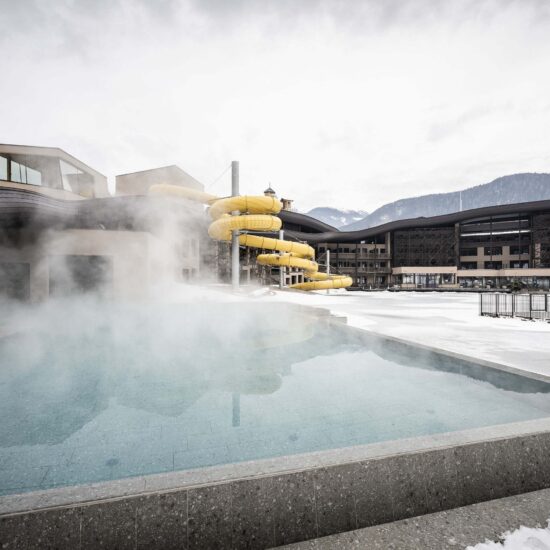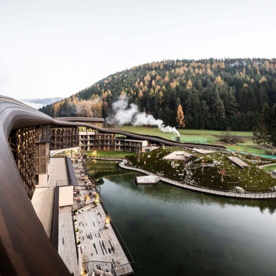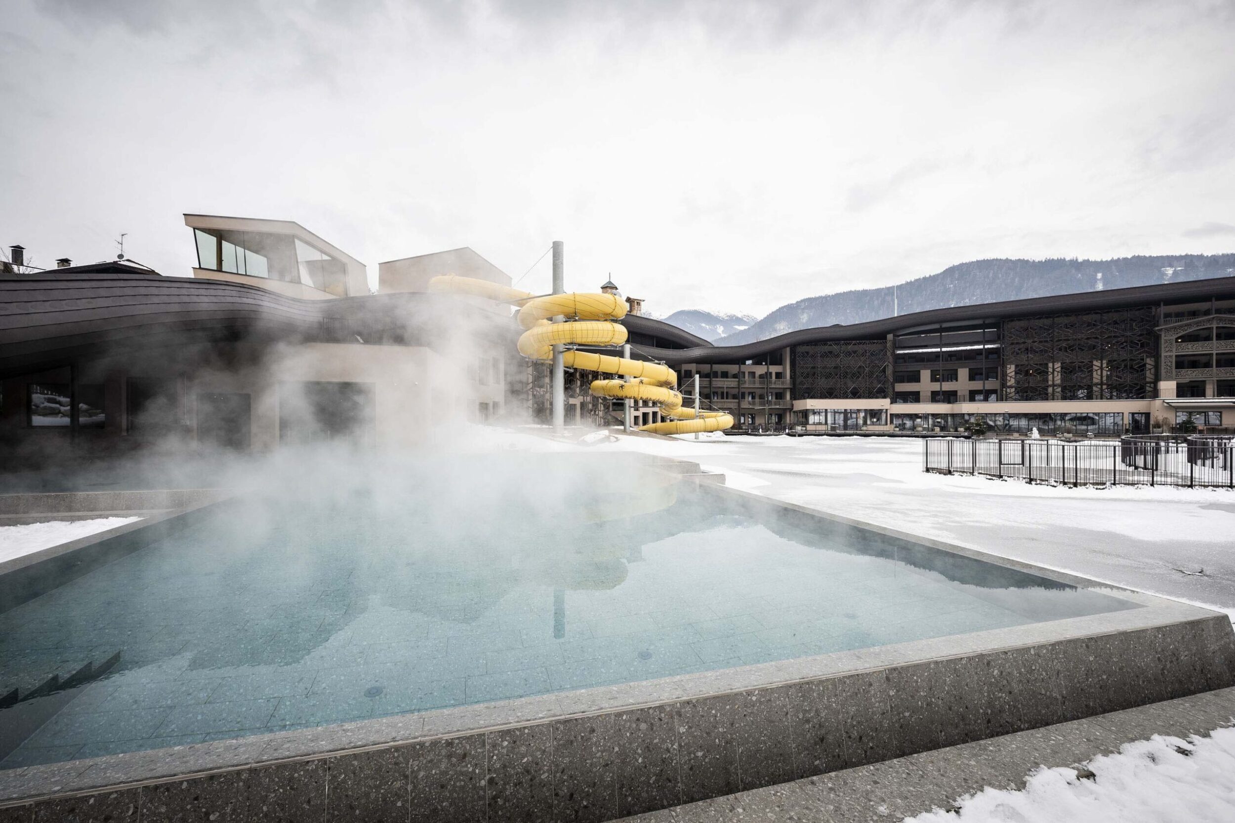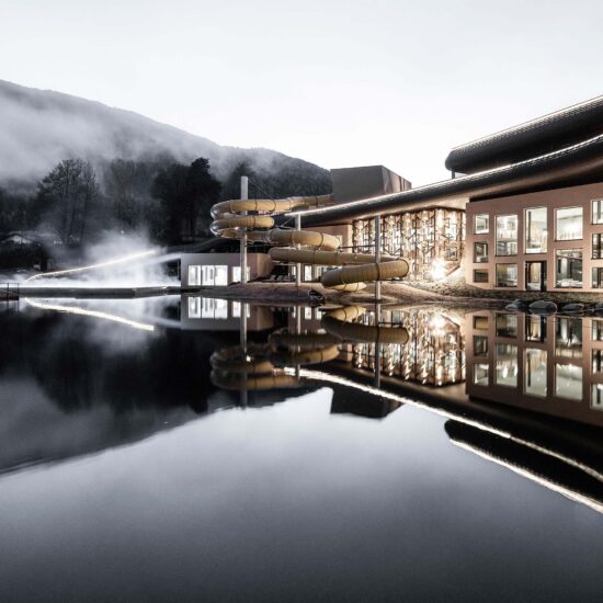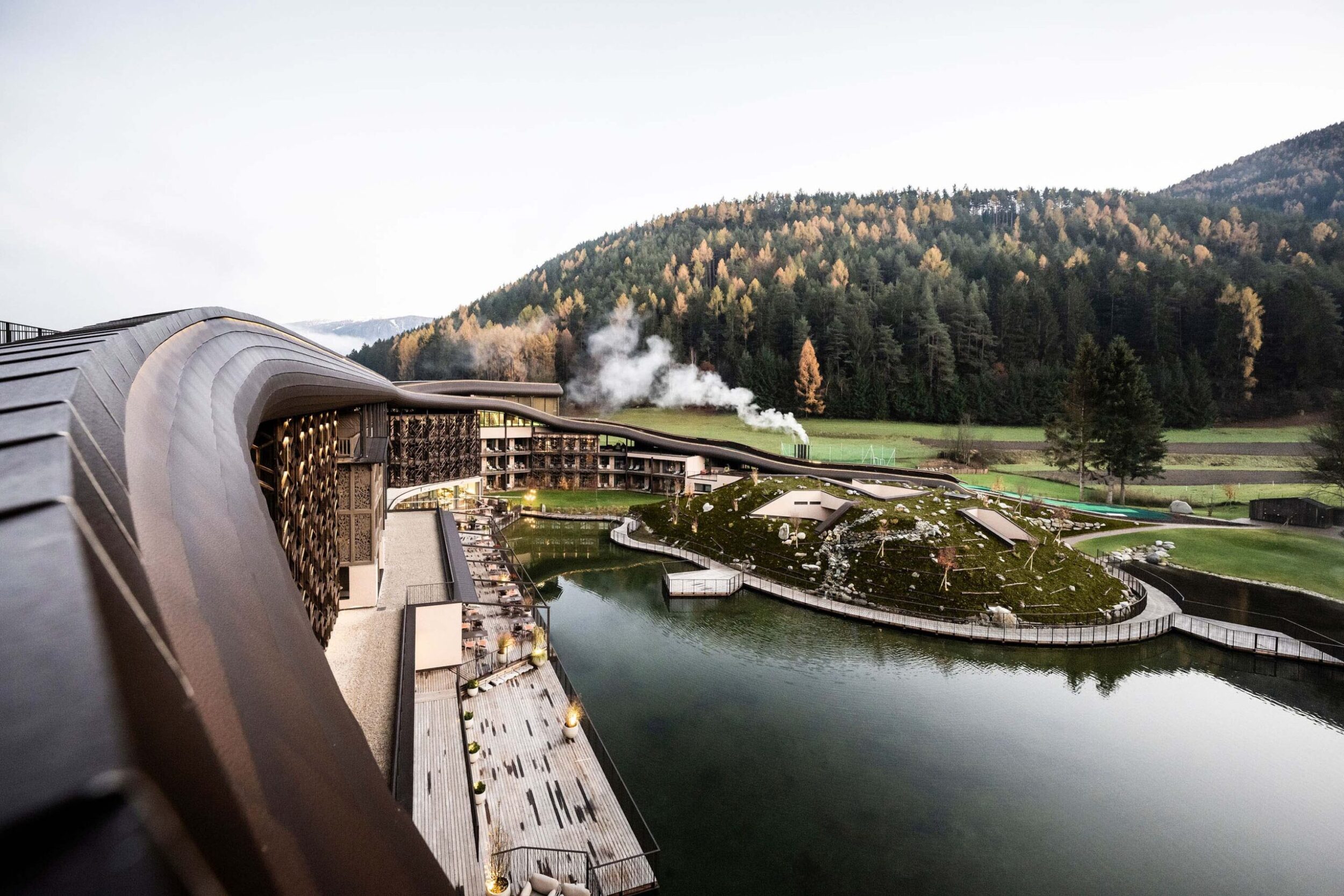 Nous comptons sur les doigts d'une seule main les bureaux qui, comme Noa – l'un des plus connus pour l'architecture montagnarde – savent interpréter une pluralité d'âmes et envies. Une fois de plus, ses architectes font preuve d'un grand naturel – et dans ce cas, même en s'amusant plutôt bien – pour requalifier l'illustre Falkensteiner Family Resort Lido à Casteldarne, en Val Pusteria, spécialisé dans les séjours de familles avec enfants, dont les propriétaires – qui gèrent 30 structures hôtelières dans six pays limitrophes – avaient demandé l'agrandissement et l'ajout de fonctions, mais toujours sous le signe de leur vocation pour l'accueil.