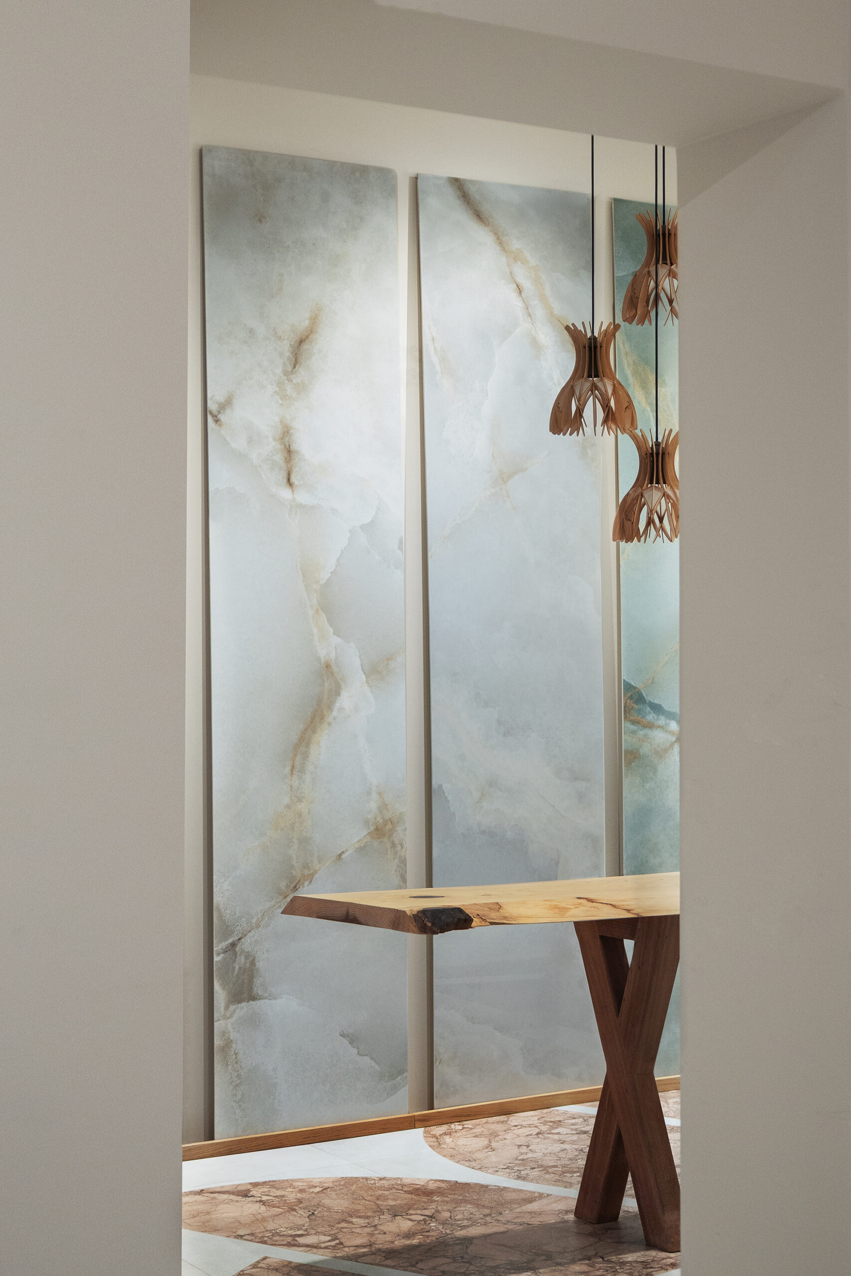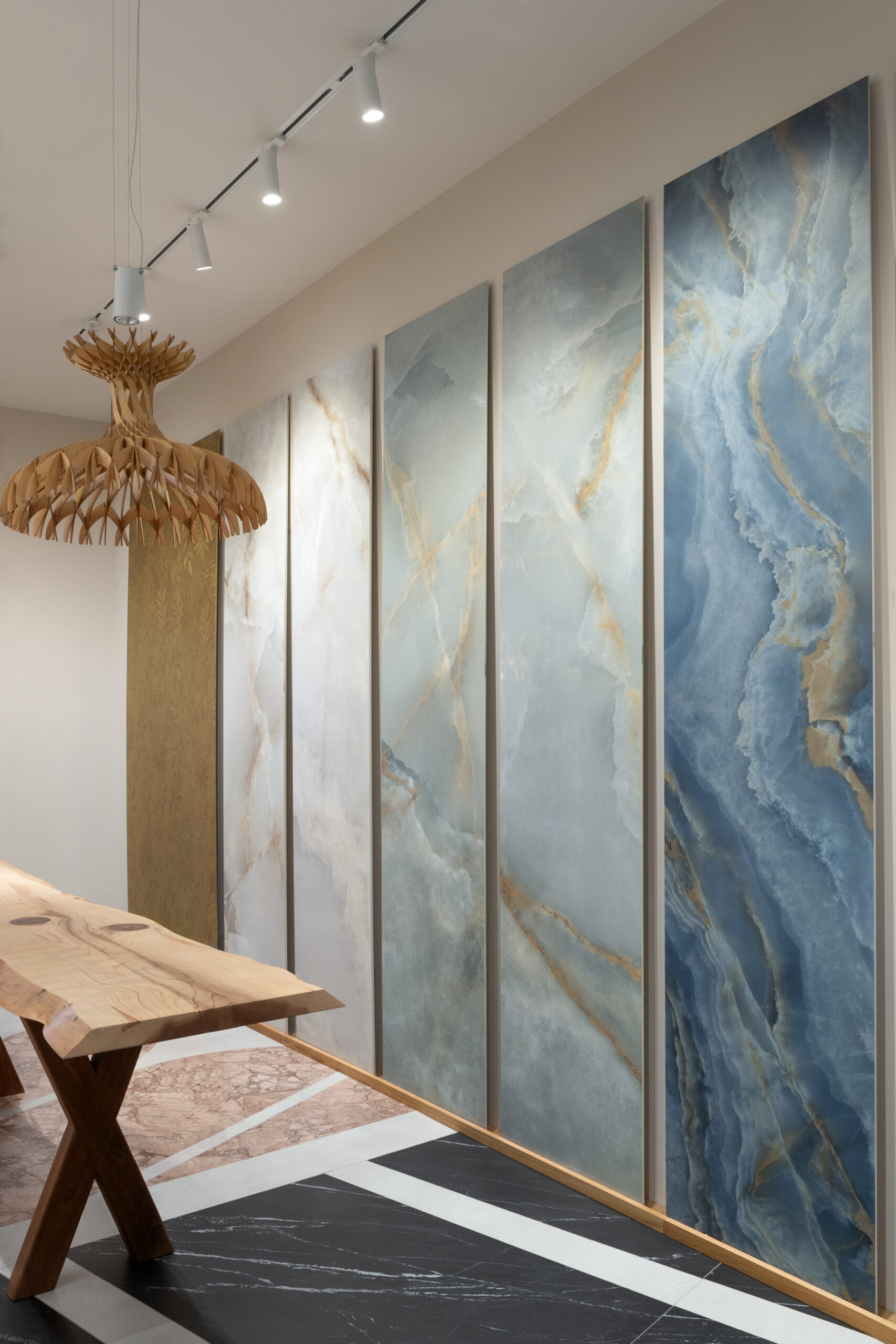 Incanto enrichit son langage avec l’introduction de cinq onyx précieux, des surfaces lumineuses et sophistiquées qui rehaussent la profondeur et la richesse de la matière. Nodis, la nouvelle collection effet bois, offre une sensation naturelle et équilibrée, conçue pour des espaces chaleureux et contemporains. Realstone Classica, la nouvelle collection effet pierre idéale pour les espaces intérieurs et extérieurs, exprime une matérialité essentielle, tandis que Solida réinterprète le charme de la terre cuite avec un langage contemporain.