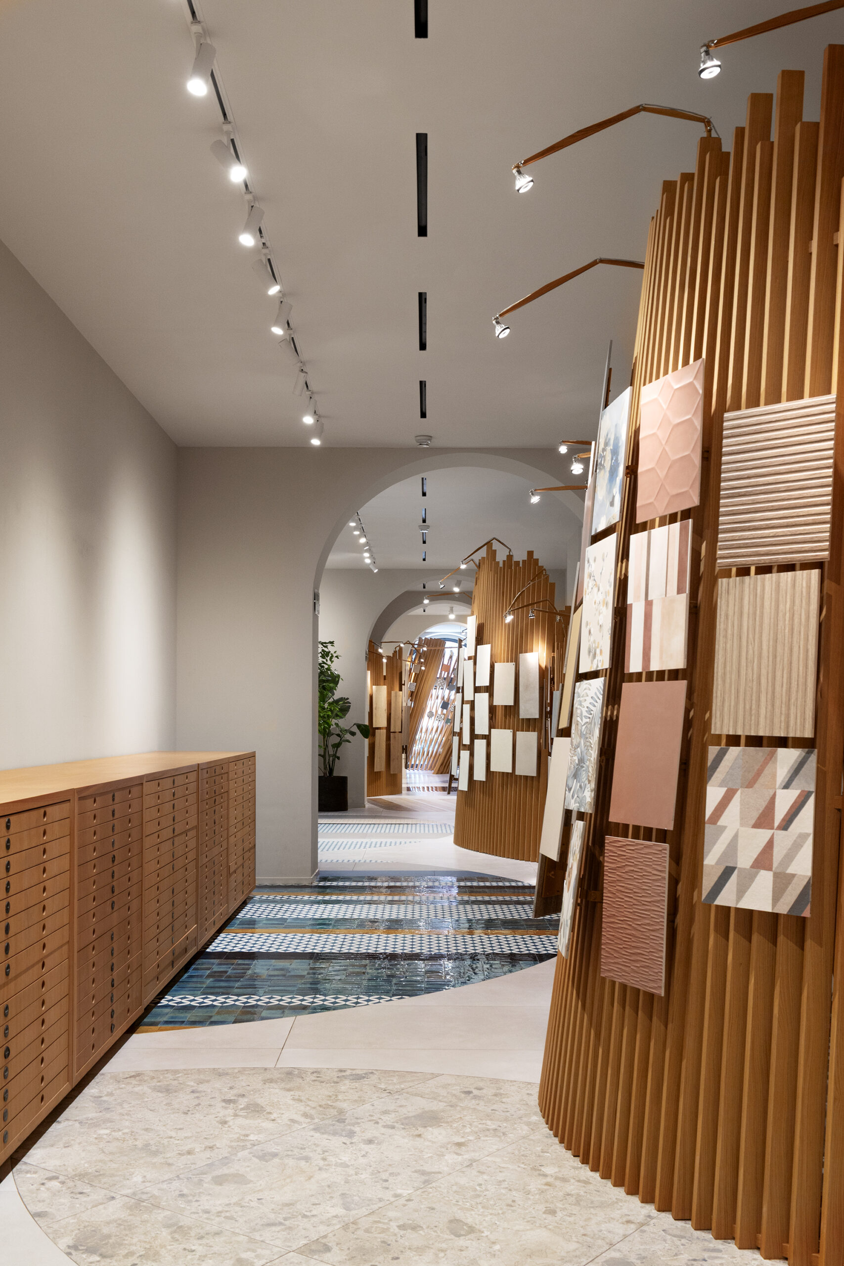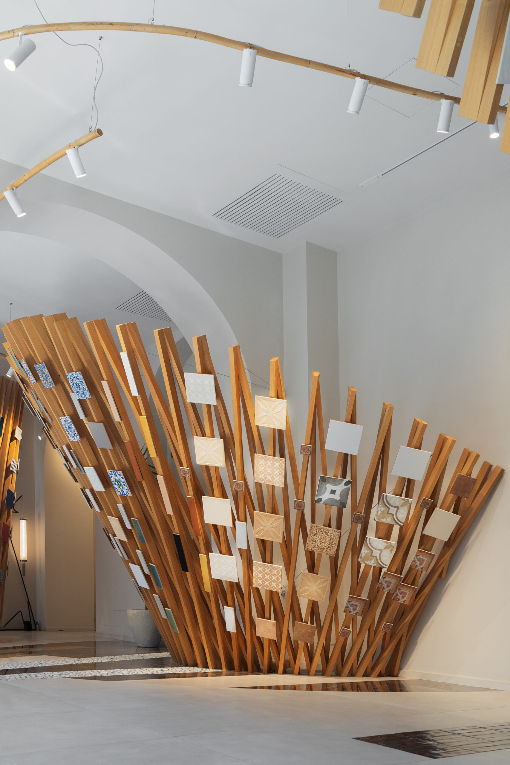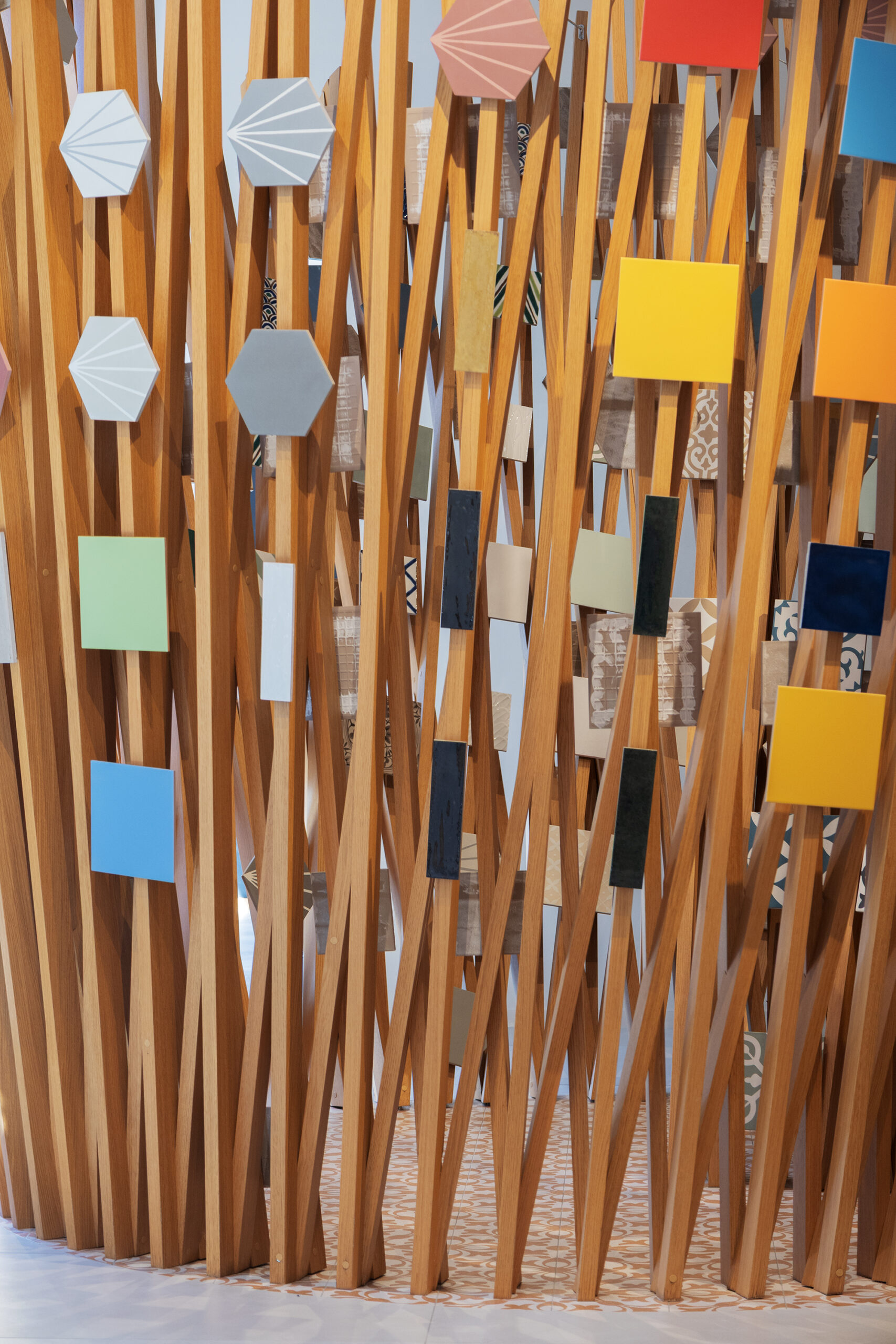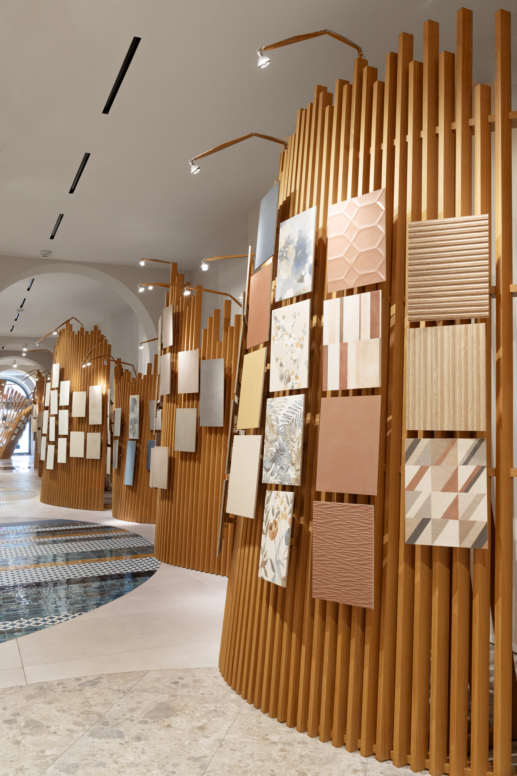 Le parcours est complété par Hand, le nouveau revêtement mural qui rappelle l’esthétique des murs enduits et talochés, où la surface devient geste, signe et substance.