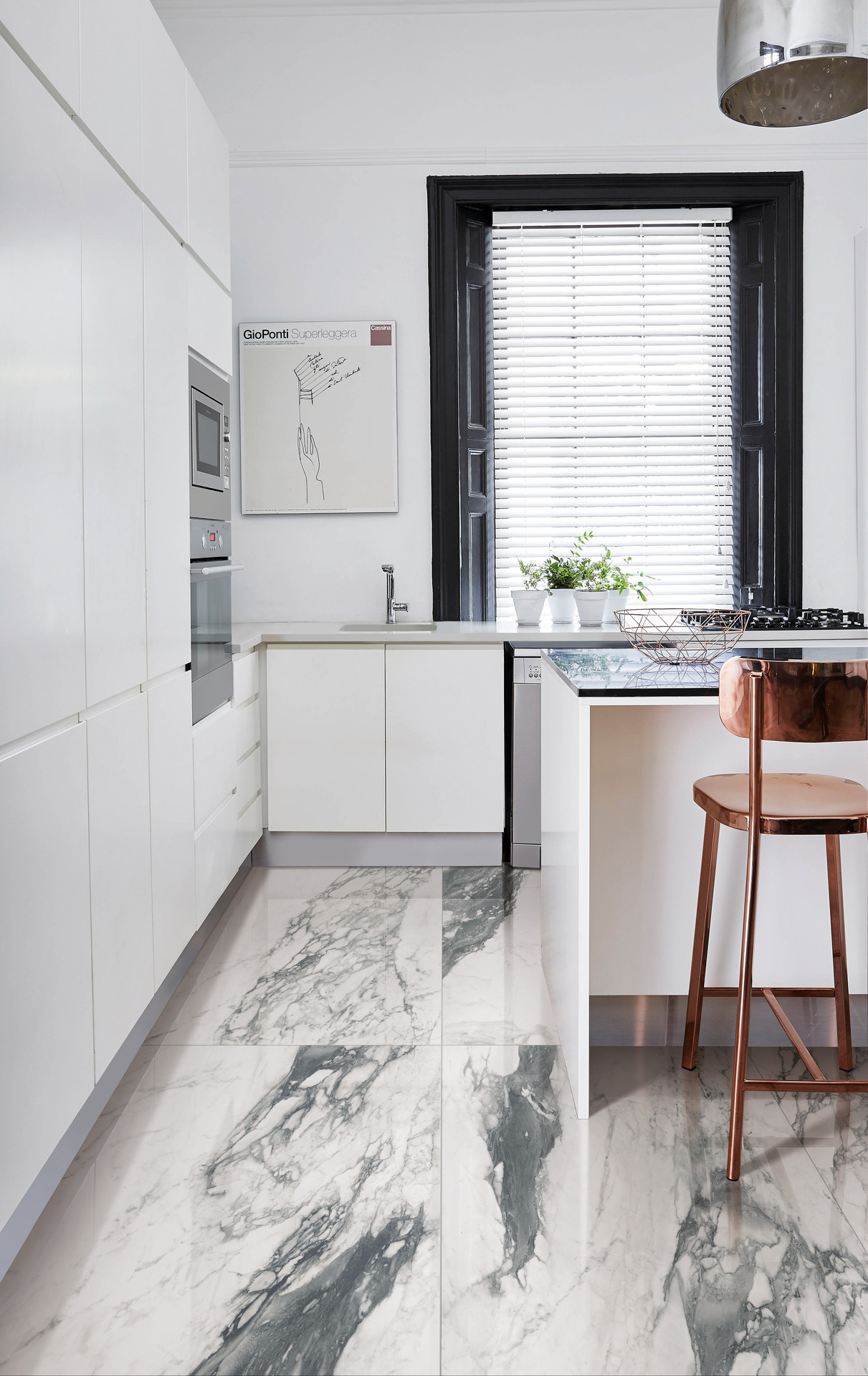 Le blanc choisi en une matière pure peut suivre, quant à lui, deux directions à partir d'une seule et même source d'inspiration : l'évocation du passé. D'une part, la collection Cocciopesto , des carreaux de céramique qui interprètent l'histoire spécifique de l'Italie sur la surface des dalles de 40×120 cm ; de l'autre, les collections Imperiale et Bistrot offrent la pureté du blanc, l'idée du luxe, du raffinement, de l'éclat historiquement associé au marbre.