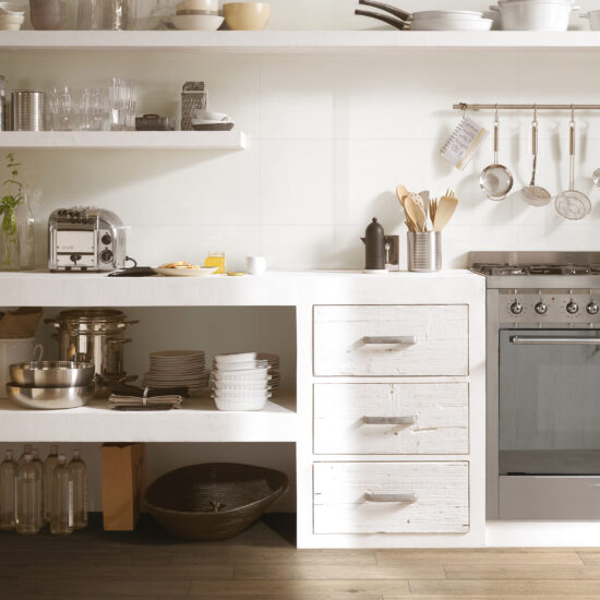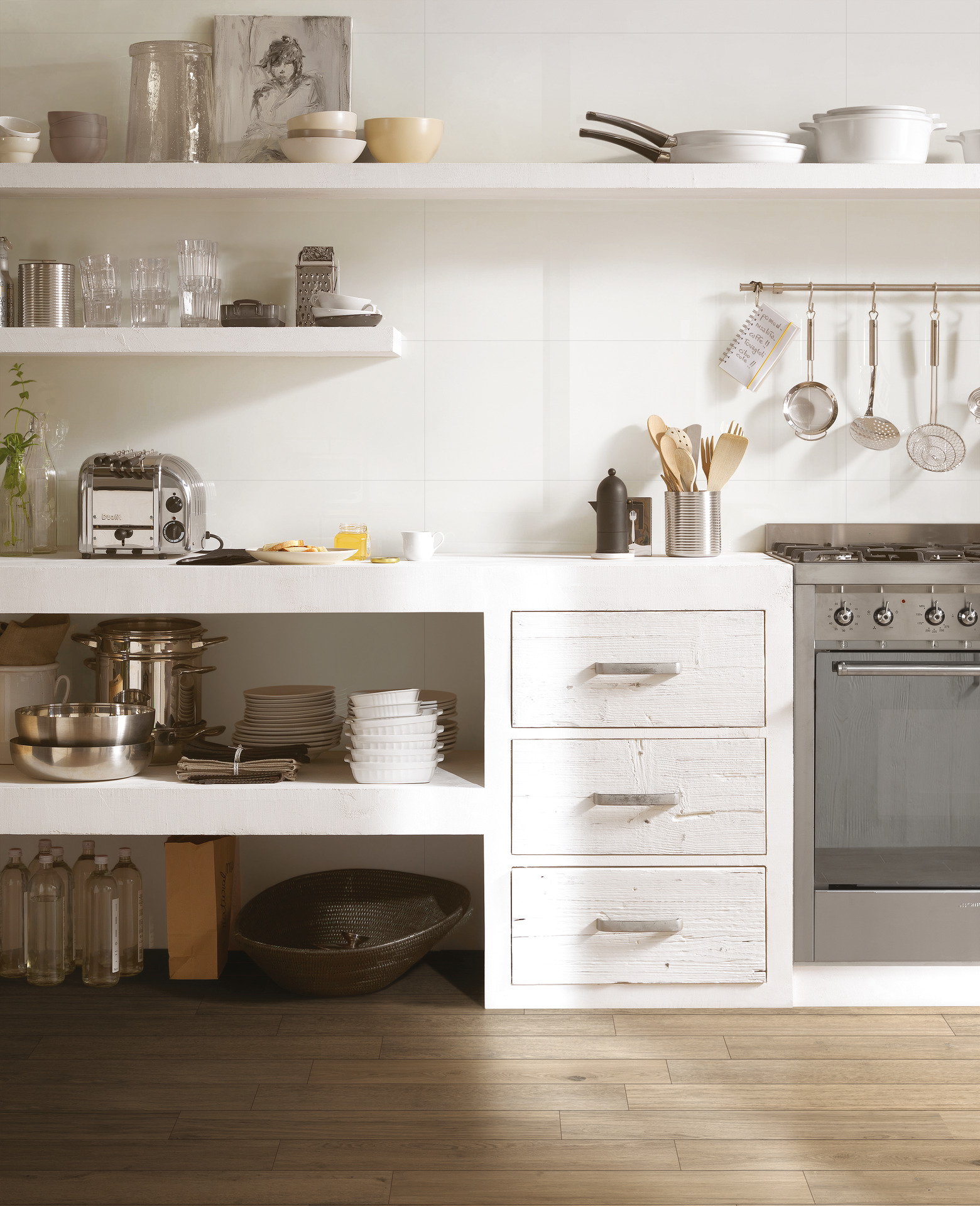 Ceux qui, au-delà de la vue, reconnaissent au toucher une inestimable valeur communicative, aimeront au contraire le blanc de la collection Tempera, délicatement patiné, et celui de la céramique effet résine de Flex, concret, présent et pouvant s'associer, en contraste, avec les couleurs d'accent du catalogue.