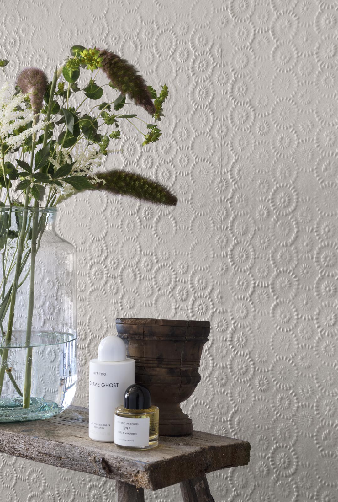 Dès le simple contact avec les doigts, la surface du décor Pizzo révèle un arrière-plan de souvenirs enserrés dans la sphère de l'artisanat, des gestes lents et experts et des matières travaillées avec soin, dans le respect de la dignité et de la qualité naturelle. Seul le recours à la mémoire permet d'aboutir à l'achèvement de sa géométrie imparfaite et évanescente.
