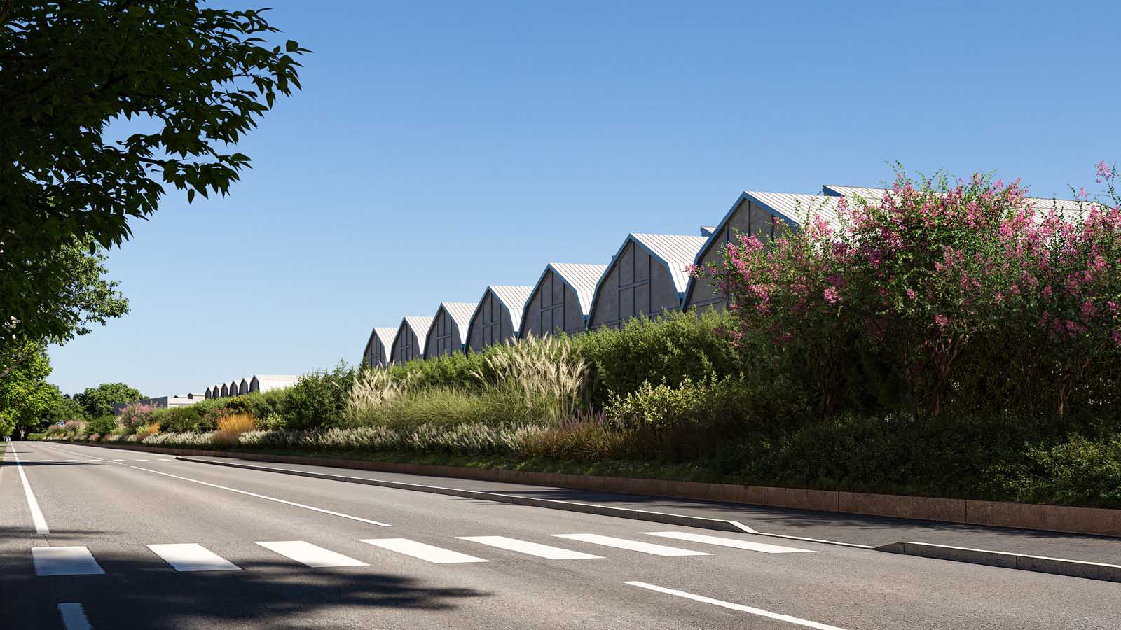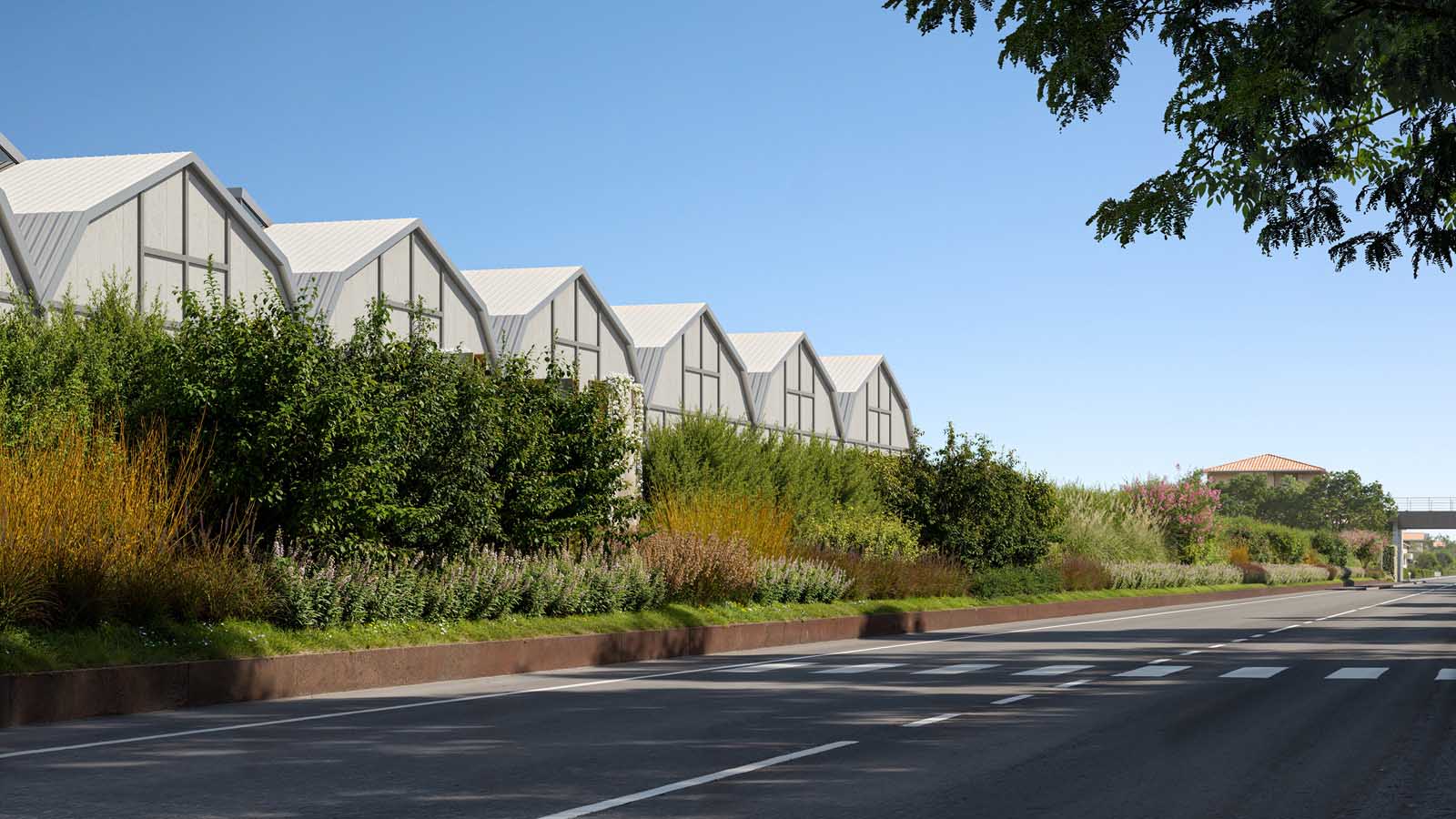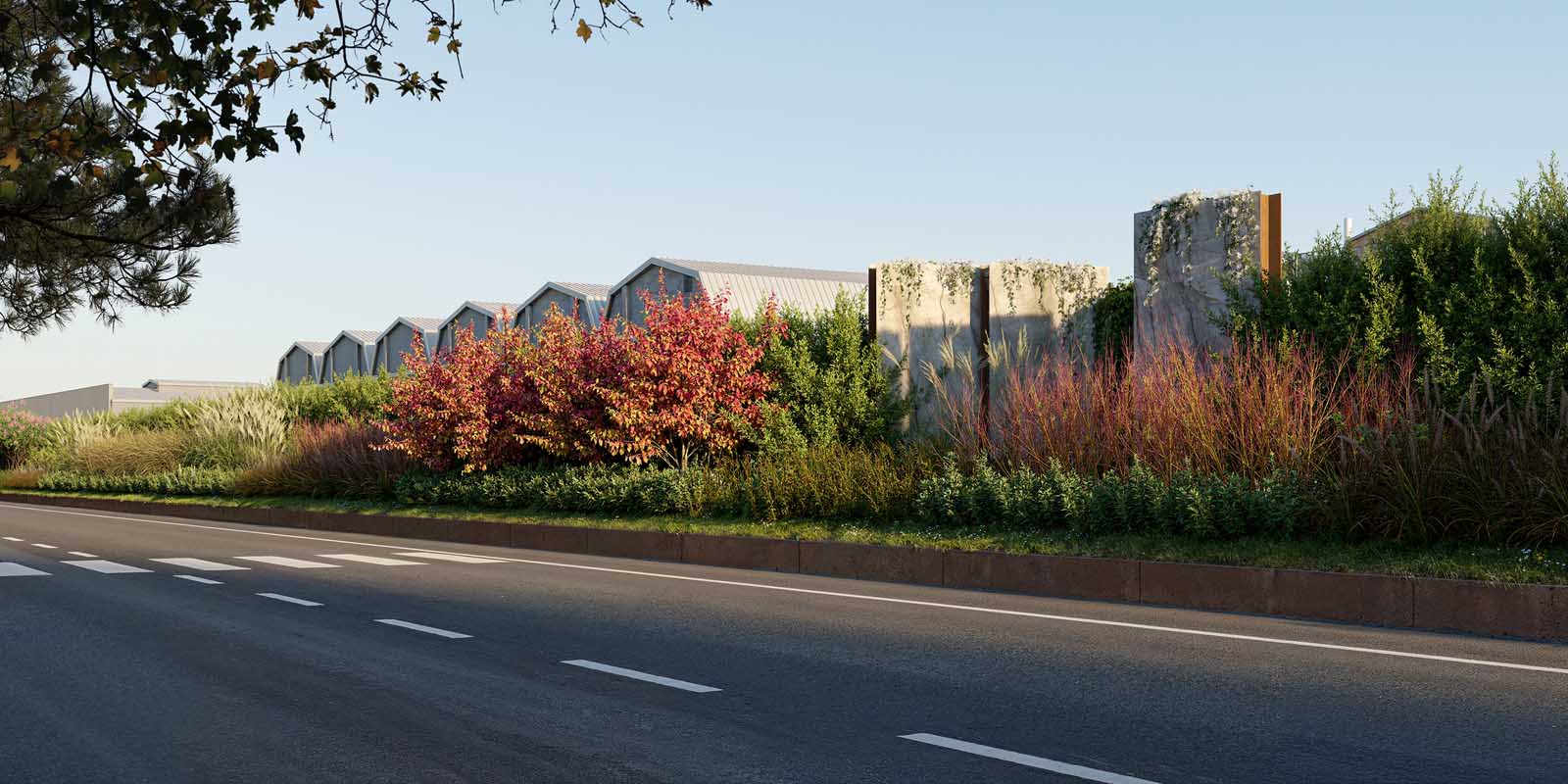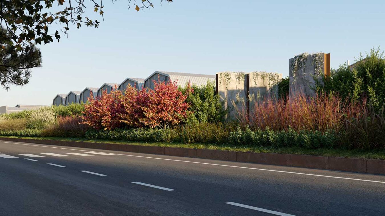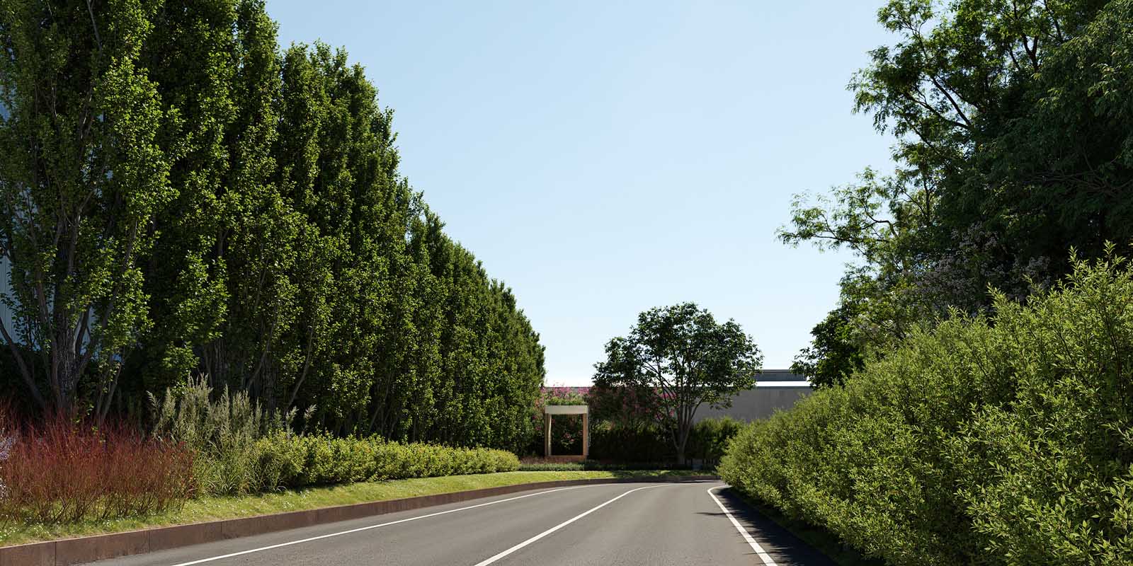 Au centre de l’intervention se trouve le dialogue entre produit industriel, nature et art : la limite ouest du site industriel de l’entreprise sera renouvelée et prendra forme grâce à de grandes dalles suspendues sur le parc linéaire, intégrées dans un système environnemental dynamique. Un paysage en constante évolution, capable de se transformer au fil des saisons et d’interagir avec les installations dans une relation de parfaite symbiose. Le mur existant et le bord asphalté deviendront un parc linéaire qui accompagnera la route, créant un système vert de dissolvances capable d’activer une nouvelle relation avec l’extérieur : différents niveaux de végétation créeront une progression capable de transformer ce qui était la frontière d’une usine industrielle en un paysage naturel et urbain à la fois.