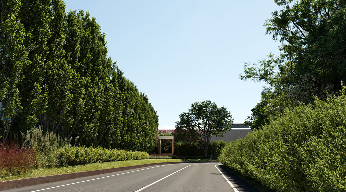 La limite ouest du site industriel deviendra un parc linéaire longeant la route.