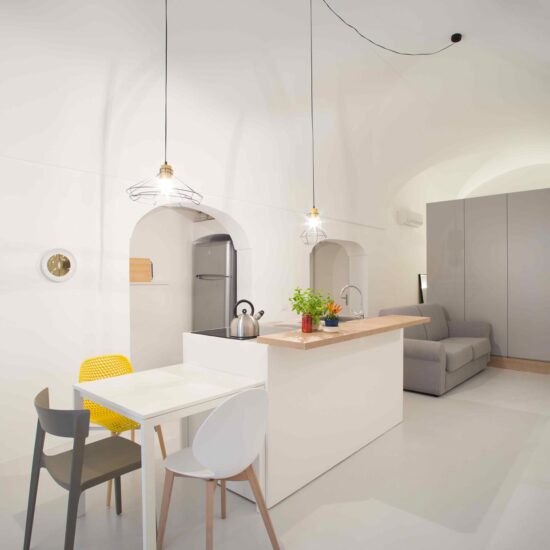 Dans le centre historique de Monopoli en Italie, dans un petit espace à voûte, se trouvait autrefois une boutique avec vitrine sur rue. Aujourd'hui, après une métamorphose, cette boutique est devenue un splendide loft qui, malgré ses petites dimensions, affiche un caractère de géant : le Loft B22. L'intérieur gravite autour du blanc, vedette absolue qui agrandit visuellement et apporte luminosité.