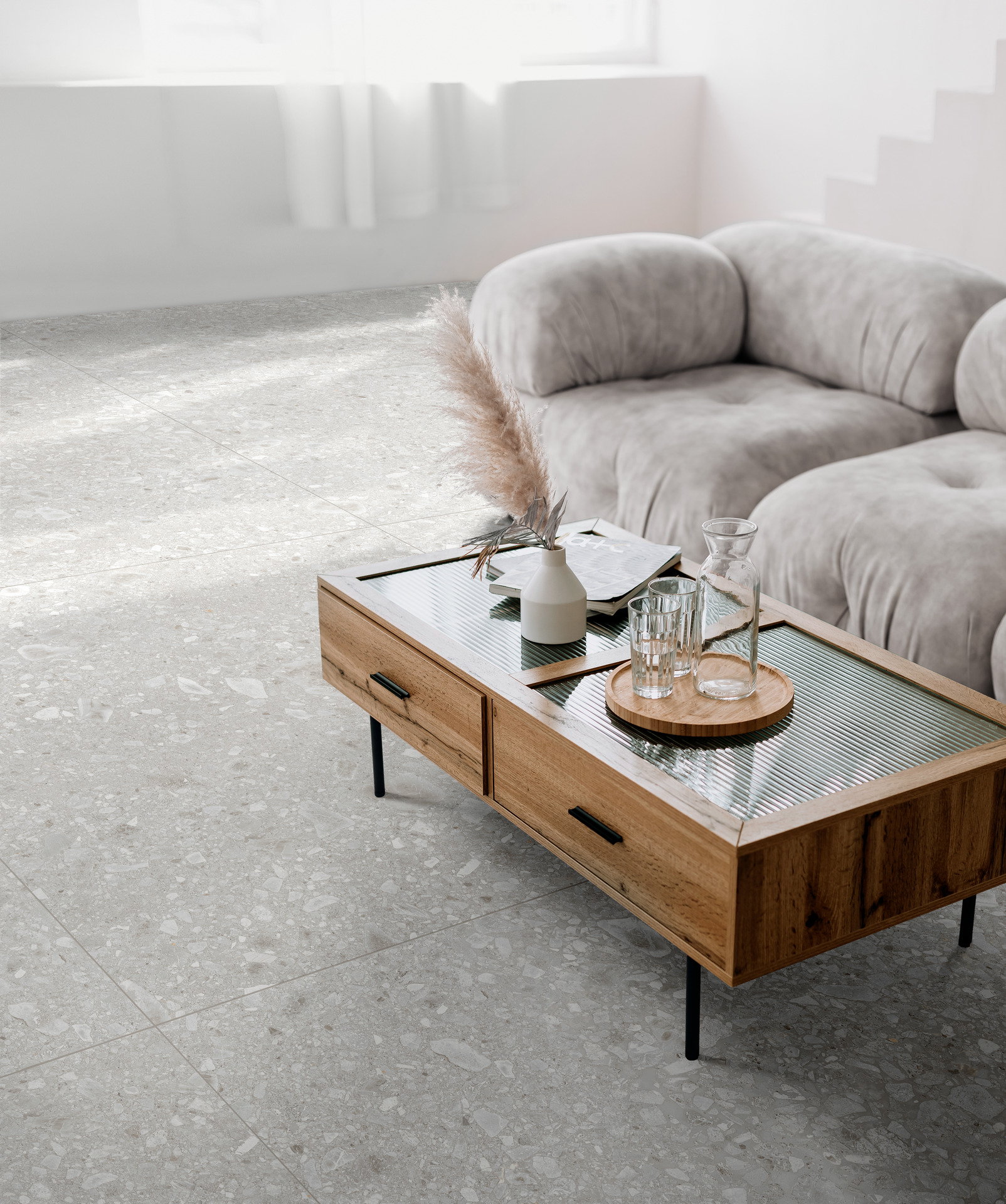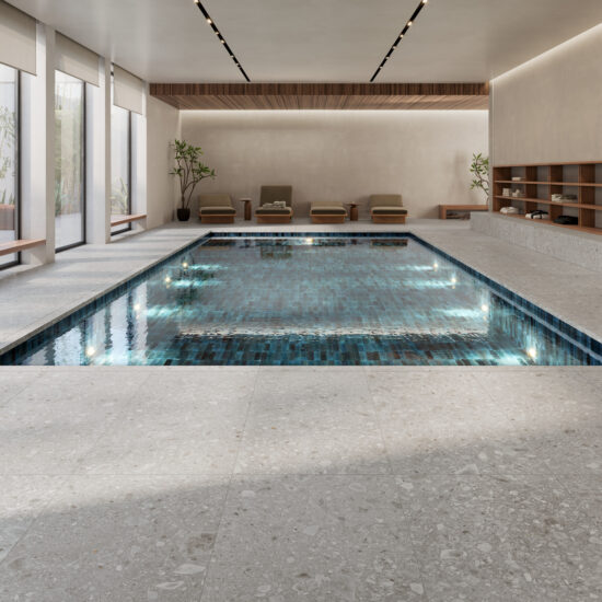 Cette esthétique iconique et distinctive, fidèlement reproduite dans la collection Realstone_Ceppo, se décline en quatre coloris – Bianco, Beige, Grigio et Antracite – dans les formats 120×120, 60×120, 60×60 cm et dans un nouveau grand format 90×180 cm, qui sublime l’exceptionnel effet matière des surfaces céramiques, tout en offrant les qualités techniques et la grande résistance du grès cérame. Le format 90×180 cm est également parfait pour proposer une continuité superficielle aussi sur les revêtements de façade extérieurs.
